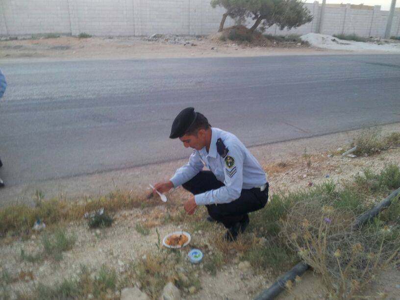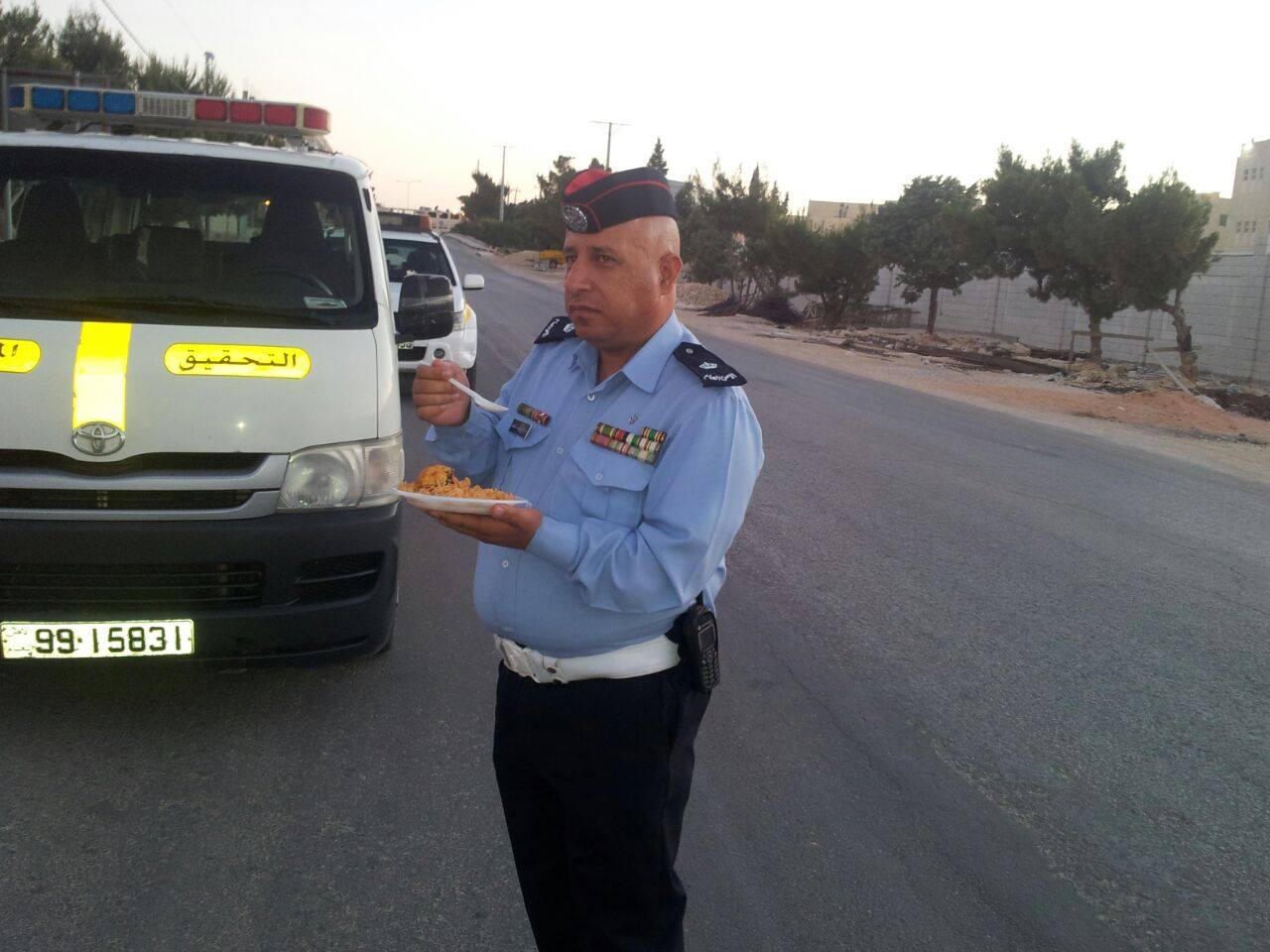 تناول رجال السير في مديرية شرطة الطفيلة افطارهم بالميدان مساء الأمس فيما تم توزيع مياه معدنية وتمور على السائقين.
