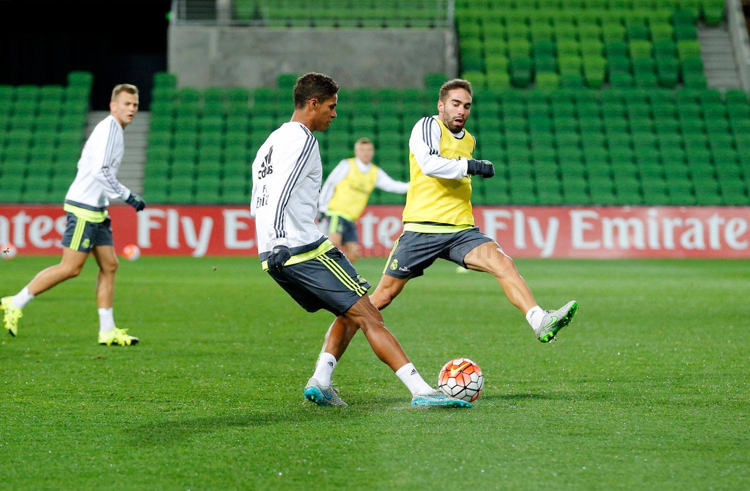 أجرى فريق ريال مدريد الإسباني اليوم تدريبات إحماء وتقوية عضلات بصالة الألعاب الرياضية كما تمرن بالملعب، في ثاني أيام معسكره بمدينة ملبورن الأسترالية للتحضير للموسم الكروي الجديد.