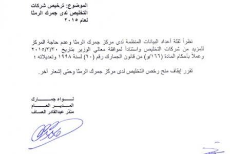 واشار القرار إلى أن القرار جاء ايضا استنادا لموافقة وزير المالية، علما بأن دائرة الجمارك اصدرت مهلة لتجديد التراخيص في المركز الجمركية الأخرى.