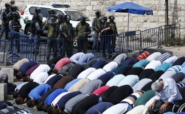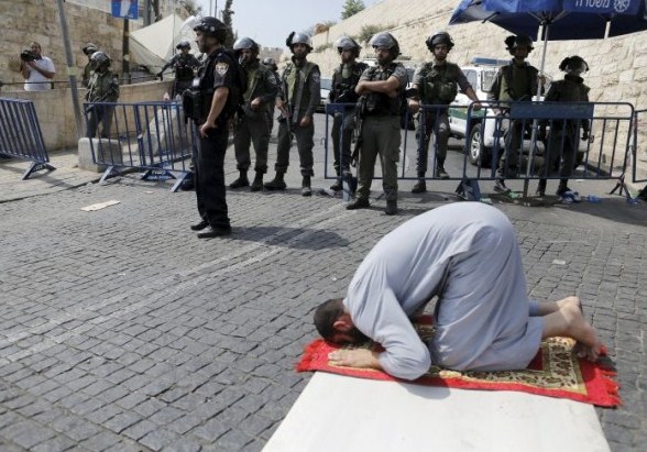 وكثير من غاز الفلفل، أطلقته قوات الاحتلال، في وجه عشرات الشبان والشيوخ، على المداخل الرئيسة للحرم القدسي، بعد الانتهاء من صلاة الجمعة، رافقه اشتباك بالأيدي بين جنود إسرائيليين، وشبان ردوا على استفزازات الجنود.
