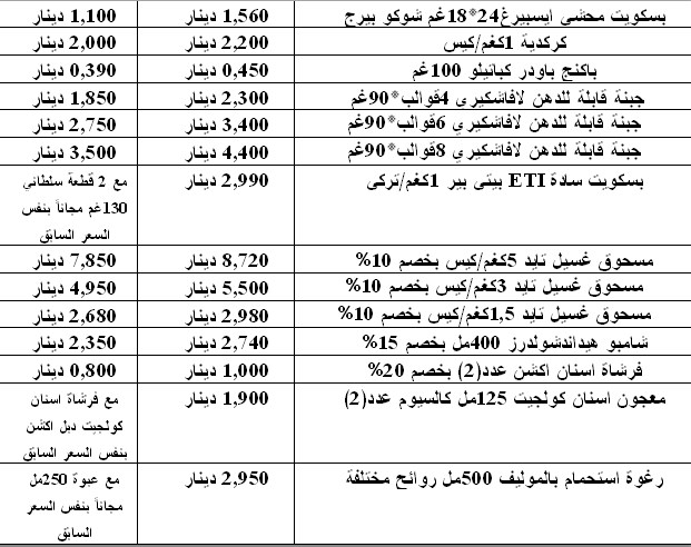 قرر مدير عام المؤسسـة الاستهلاكية المدنية سلمان القضــاه تخفيض اسعار الدفعة الرابعة لمجموعة من المواد في كافة اسواق المؤسسة بنسبة3 تراوحت بين 3%-34%، وذلك استجابة للمبادرات الملكية السامية بحماية المواطنين وخاصة ذوي الدخل المحدود من ارتفاع الاسعار.