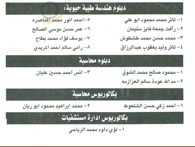 دعت وزارة الصحة وبالتنسيق مع ديوان الخدمة المدنية المرشحين التالية اسماؤهم ادناه مراجعة مديرية شؤون الموظفين/الوزارة يوم الخميس 22/10/2015 وذلك لغايات استكمال اجراءات التعيين مصطحبين معهم الاوراق الثبوتية وكل من يتخلف عن الحضور في المدة المحددة يعتبر مستنكفا عن التعيين.