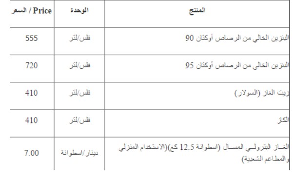 لتبقى أسعار المحروقات كما هو موضح في الجدول التالي :