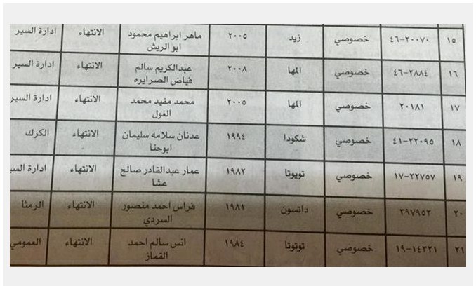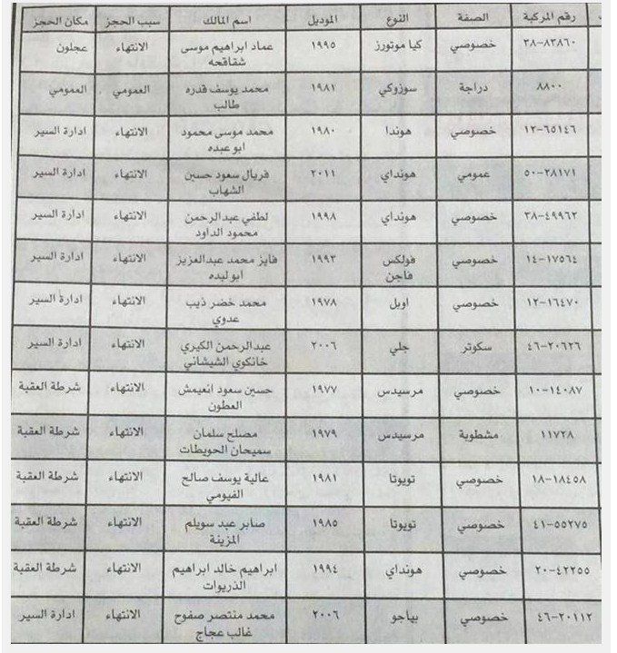 دعت ادارة ترخيص السواقين والمركبات من مالكي السيارات المبينة أرقامها وتفصيلاتها رورة مراجعة ادارة الترخيص خلال مدة أقصاها اسبوعان.