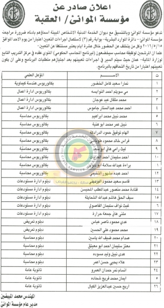 وبحسب ديوان الخدمة، فإن كل من يتخلف عن الحضور يعتبر مستنكفا عن التعيين، داعيا التالية اسماؤهم احضار اثبات للشخصية. كما يدعو الديوان بالتنسيق مع مختلف المؤسسات والوزارات إلى تعبئة شواغر مختلفة استنادا للشروط المنصوص عليها من كل مؤسسة.