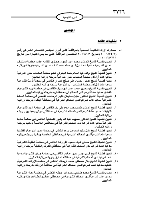 صدرت الإرادة الملكية السامية، الأحد، بالموافقة على قرار المجلس القضائي الشرعي والمتضمن الموافقة على تعديلات وتنقلات في الجهاز القاضي بالمحاكم الشرعية.