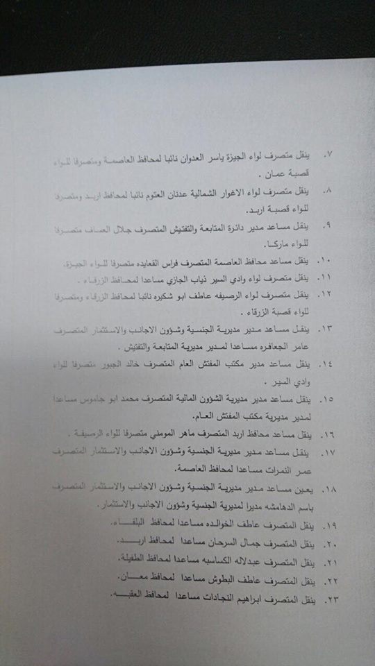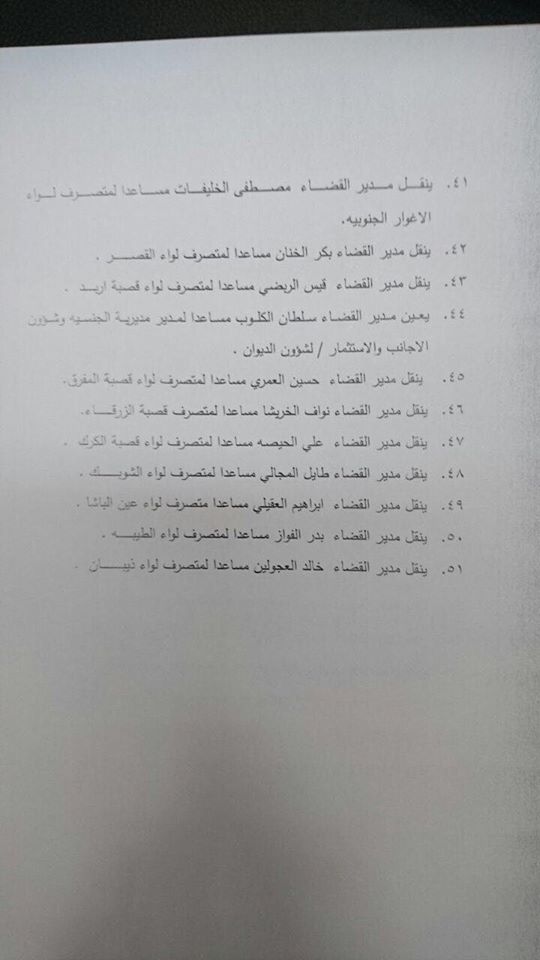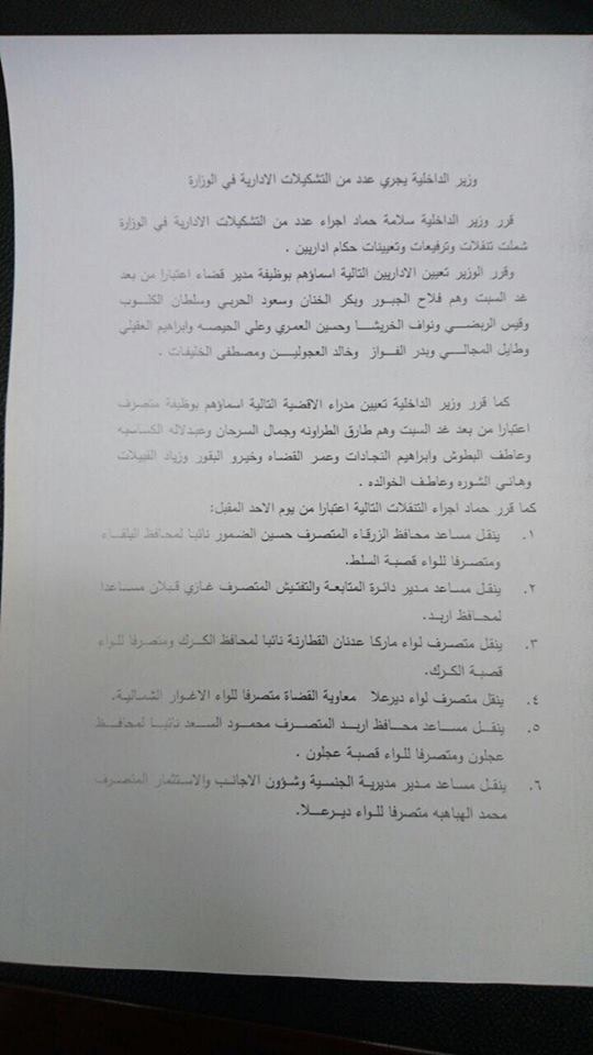 قرر وزير الداخلية سلامة حماد اجراء تنقلات وترفيعات بين متصرفين ومدراء اقضية اليوم شملت كلا من: