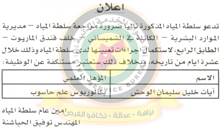 دعا ديوان الخدمة المدنية بالتعاون مع مختلف الوزارات والمؤسسات الحكومية، التالية اسماؤهم لاجراء المقابلات الشخصية وعقد الامتحان التنافسي لغايات التعيين.
