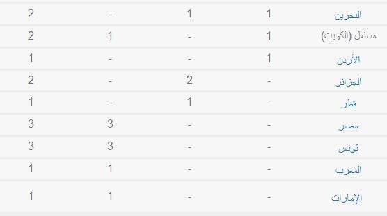 وجاءت الجزائر في المركز الـ 62 عالميا، بعد الحصول علي ميداليتين فضيتين، وحصدت قطر ميدالية فضية وحلت في المرتبة الـ 69 عالميا، أما مصر وتونس فقد احتلتا في المركزين الـ 75 عالميا بعد الحصول على 3 ميداليات برونزية لكل من البلدين، وحصل المغرب والإمارات على برونزية لكل منهما.