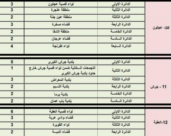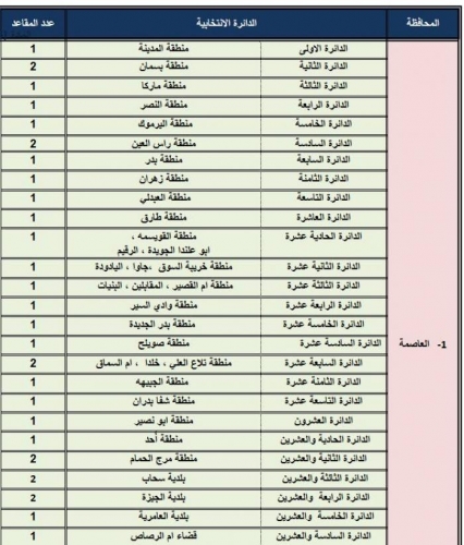 عرض ديوان التشريع والرأي نظام تقسيم الدوائر الانتخابية لمجالس المحافظات والمقاعد المخصصة لها لسنة 2016 والصادر استناداً لاحكام المادة (6) من قانون اللامركزية رقم (49) لسنة 2015، وسيعمل بهذا النظام هذا النظام من تاريخ نشره في الجريدة الرسمية.