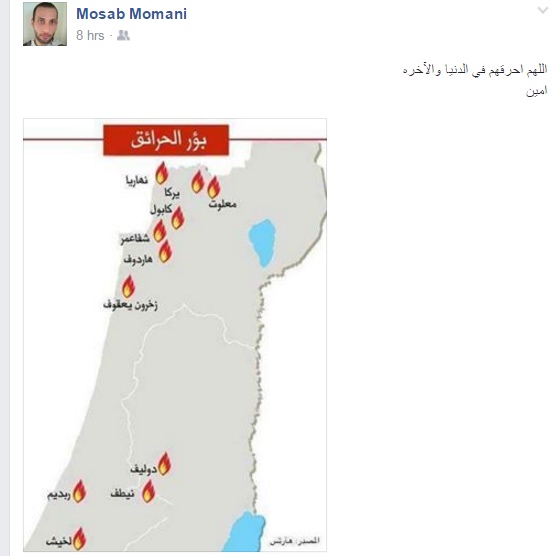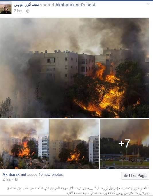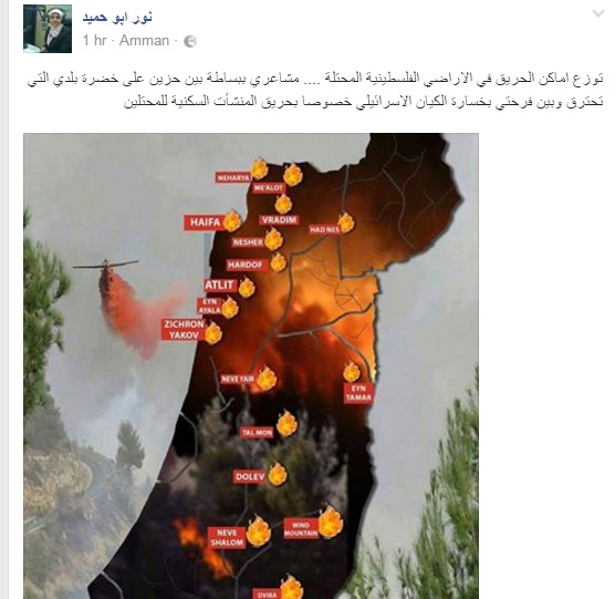 تباينت ردود الافعال على مواقع التواصل لاجتماعي بين الناشطين حول الحرائق التي تجتاح الكيان الصهيوني منذ ثلاثة أيام وتسببت بحرائق تقدر مساحتها بآلاف الدونمات من الاشجار بالاضافة الى الخسائر المادية التي تكبدها الاحتلال الاسرائيلي نتيجة مكافحة تلك الحرائق.