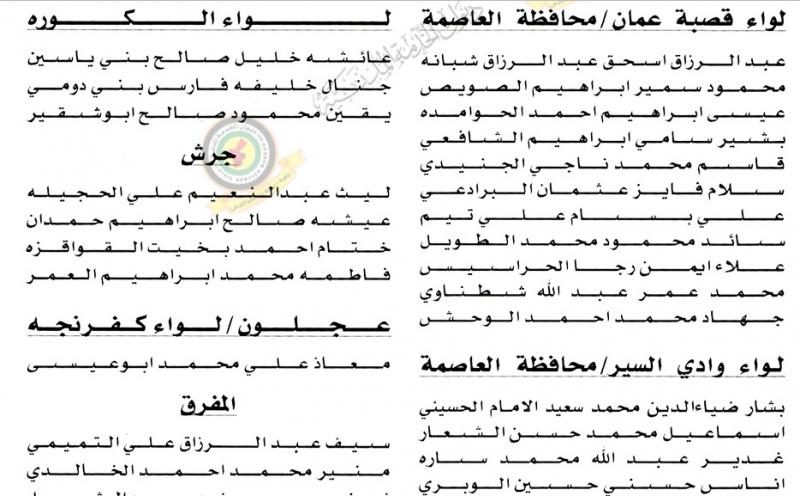 وزارة الإدارة المحلية توجّه البلديات لرفع الجاهزية للتعامل مع المنخفض الجوي   أمانة عمان: 350 مبنى مهجورا يهدد البيئة والصحة العامة في العاصمة   أمانة عمّان تعلن حالة الطوارئ المتوسطة للتعامل مع آثار المنخفض الجوي   مندوبا عن الملك وولي العهد. العيسوي يعزي عشيرة العربيات   الأمن العام : رغم عديد التحذيرات أُسعف اليوم شخص مصاب بحالة اختناق نتيجة استخدام مدفأة (الشموسة)   تفاصيل مهمة حول الإبلاغ عن إصابات العمل وحقوق العامل في الضمان   هل تتساقط الثلوج ليلة رأس السنة؟ الأرصاد تجيب   تعليمات لطلبة التكميلي وإتاحة تحديد مواقع القاعات إلكترونياً   وقف ضخ المياه عن مناطق في عمان والزرقاء الأحد .. اسماء   أسعار الذهب والفضة تسجل مستويات قياسية جديدة   منخفضان جويان متتاليان يؤثران على المملكة مع نهاية 2025   منخفضان جويان متتاليان يؤثران على المملكة مع نهاية 2025   تحقيق: جنرالات الأسد يخططون لتمرد سينفذه 168 ألف مقاتل   "الأرصاد" : طقس بارد ومنخفض جوي يؤثر على الأردن السبت   تقرير المحاسبة: جرافة "الكرك" تسافر للصيانة وتعود بعد 4 سنوات "معطلة" في واقعة غريبة   منخفض جوي ماطر وطويل التأثير يبدأ السبت ويشتد الأحد والاثنين   تحديد موعدي شهري شعبان ورمضان فلكيا   حاويات ونقاط جمع نفايات لوقف الإلقاء العشوائي في المحافظات   ورقة سياسات: 3 سيناريوهات لتطور مشروع مدينة عمرة   الأردن استورد نحو 300 ألف برميل نفط من العراق الشهر الماضي