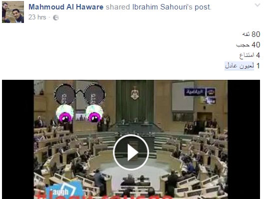 وقال الناشطون ان مثل هكذا تصرفات وقوال خصوصاً في الوقت الذي كان يجري فيه التصويت على الثقة بما عد مخالفاً للنظام الداخلي لمجلس النواب على الثقة ، وذلك حسبما قاله رئيس مجلس النواب المهندس عاطف الطراونة في كلمة مقتضبة قبل بدء التويت موضحاً ان التصويت بثلاث كلمات فقط هي: 'ثقة ، حجب ، امتناع'.