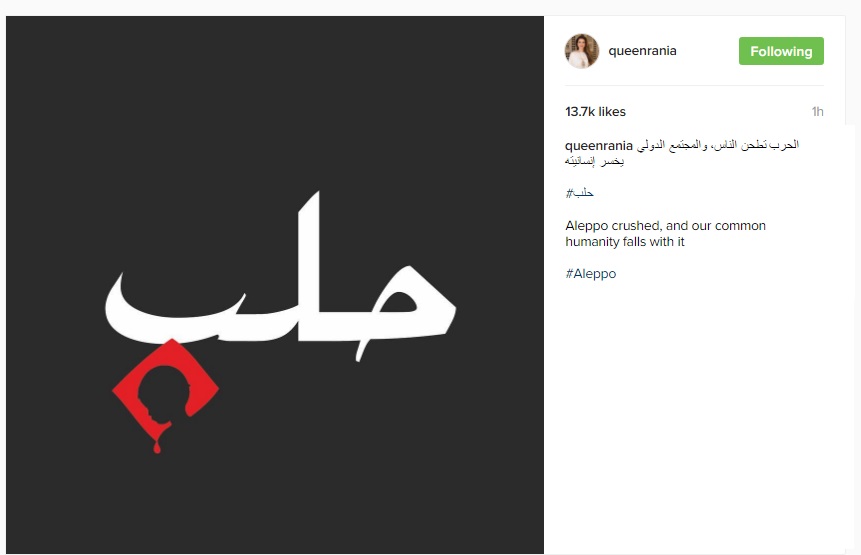 وقالت جلالتها عبر حسابها على فيسبوك 'إن الحرب تطحن الناس، والمجتمع الدولي يخسر إنسانيته'.