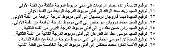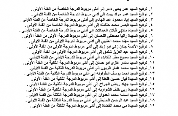 صدرت الإرادة الملكية السامية بإجراء الترفيعات التالية لموظفي الديوان الملكي اعتبارا من 1-1-2017 :