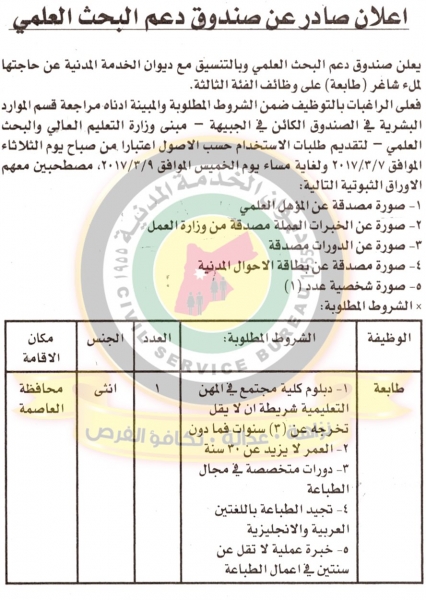 كما دعا الديوان بالتنسيق مع مختلف المؤسسات والوزارات إلى تعبئة شواغر مختلفة استنادا للشروط المنصوص عليها من كل مؤسسة .