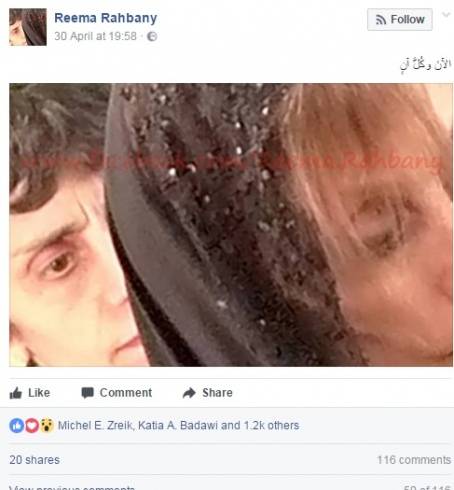 نشرت إبنة الفنانة اللبنانية القديرة فيروز، المخرجة ريما الرحباني، عبر حسابها الرسمي على "فايسبوك" صورة حديثة لها.