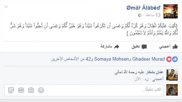 وبمجرد انتشار خبر العملية الفدائية ضجت مواقع التواصل الاجتماعي بوصية الفدائي العبد حيث غرد قائلاً عبر صفحته قبل ساعتين من تنفيذه للعملية البطولية .