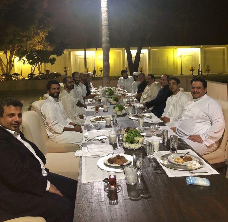 وضمت الصورة الأمير #محمد_بن_سلمان ولي العهد السعودي، والرئيس المصري عبد الفتاح #السيسي، والملك حمد بن عيسى ملك البحرين، والعاهل الأردني الملك عبد الله الثاني، والشيخ محمد بن زايد ولي عهد أبوظبي، والشيخ محمد بن راشد حاكم دبي، وتركي آل الشيخ رئيس هيئة الرياضة في السعودية وسعود القحطاني المستشار بالديوان الملكي واللواء عباس كامل القائم بعمل رئيس المخابرات المصرية.