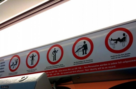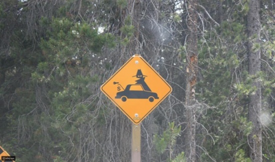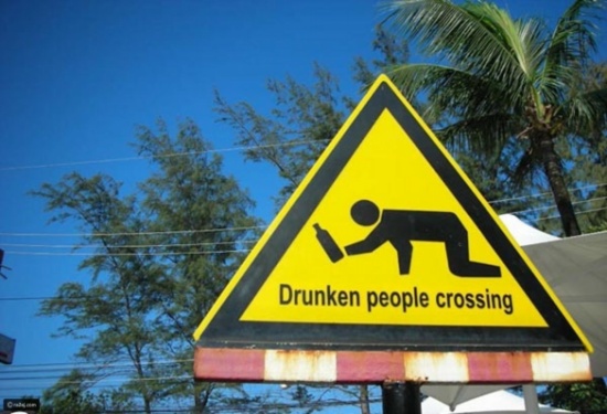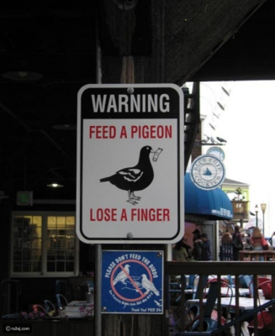 وفي مكان آخر توجد علامة تُحذر من إطعام الطيور وإلا ستفقد أحد أصابعك! ولافتة أخرى على أحد الطُرق تُوضح أن هذا المكان مخصص لعبور المخمورين..