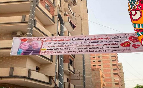 وفي مشهد سينمائي من فيلم شديد الرومانسية تجسد في قلب أحد أهم شوارع مدينة أبو قرقاص، جنوب محافظة المنيا ، حيث أعلن زوج لزوجته اعتذاره وعشقه لها على مرأى من جميع المارة جاء ذلك بتعليق لافتة إعلانية تحمل صورة تجمعه مع زوجته مدون بها: يتقدم السيد وليد محمد عثمان لزوجته السيدة سارة محمد عبد الناصر بأسمى وأرق كلمات الشكر والتقدير والاحترام والاعتذار لما قد عانته طوال السنوات الماضية، كما أتقدم لها بالشكر والعرفان لدعمها المستمر والمتواصل لي داعيًا الله أن يجعلها دائمًا سندًا وحصنًا لنا لأولادنا فلها كل الشكر والتقدير والاحترام.