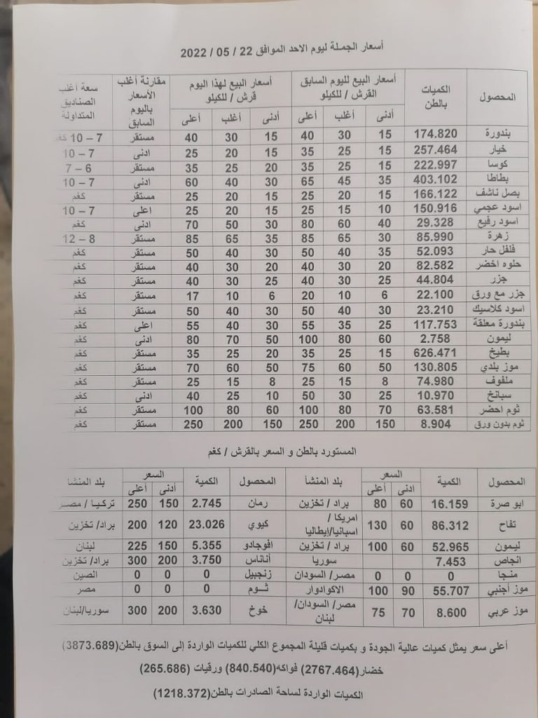 وبحسب قائمة أسعار الجملة ، يُباع صندوق الزهرة بسعر 8 – 12 دينارا، فيما بلغ الحد الأعلى لسعر بيع الكيلو غرام الواحد من الزهرة 85 قرشا.