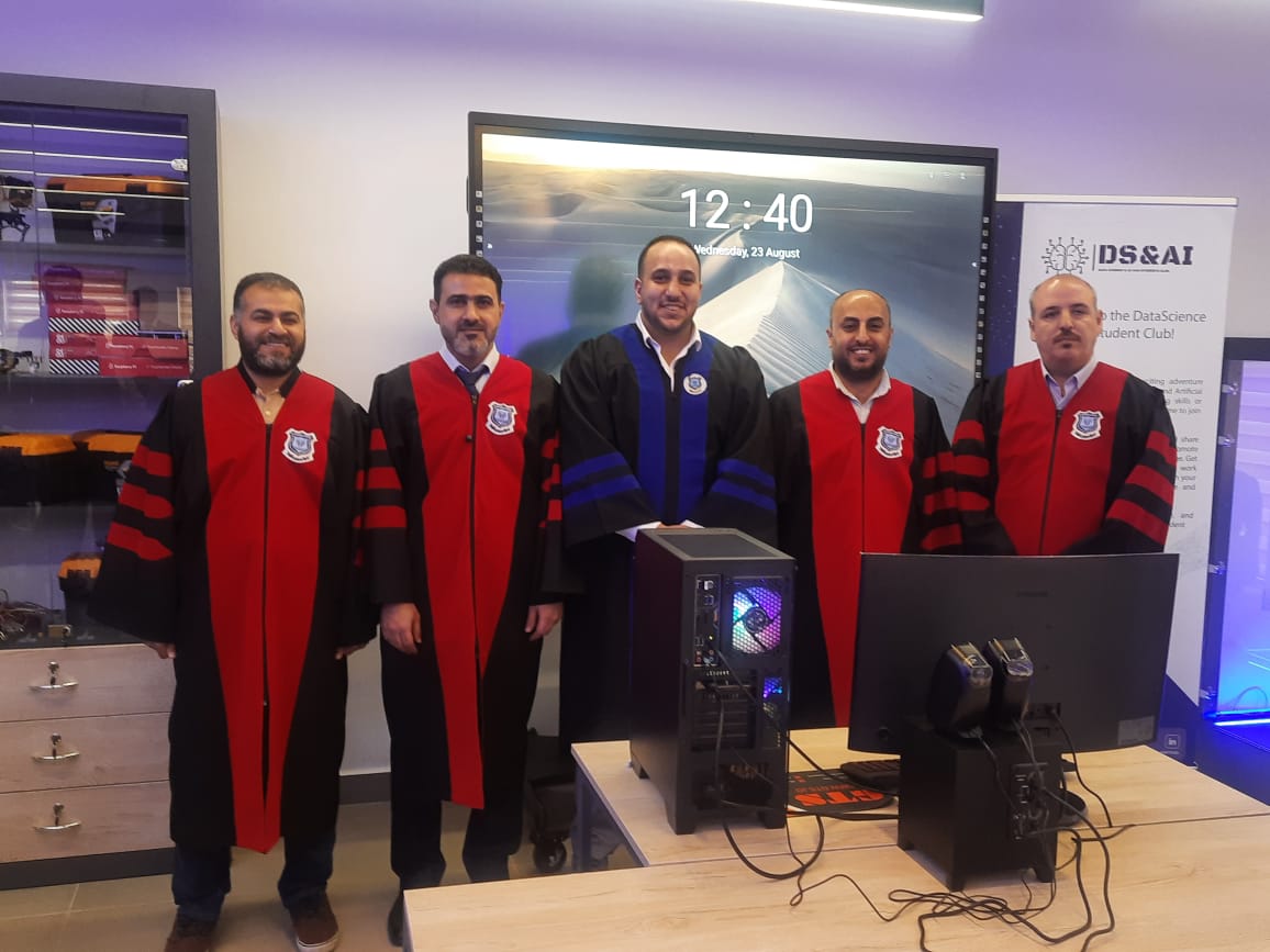 أ. د. مصلح أبو الحاج/ مشرفاً رئيساً ود. أحمد أبو شريحة / مشرفاً مشاركاً ود. عبد الرحمن حمزة حسين / عضواً داخلياً ود. البراء عوجان / عضواً خارجياً.