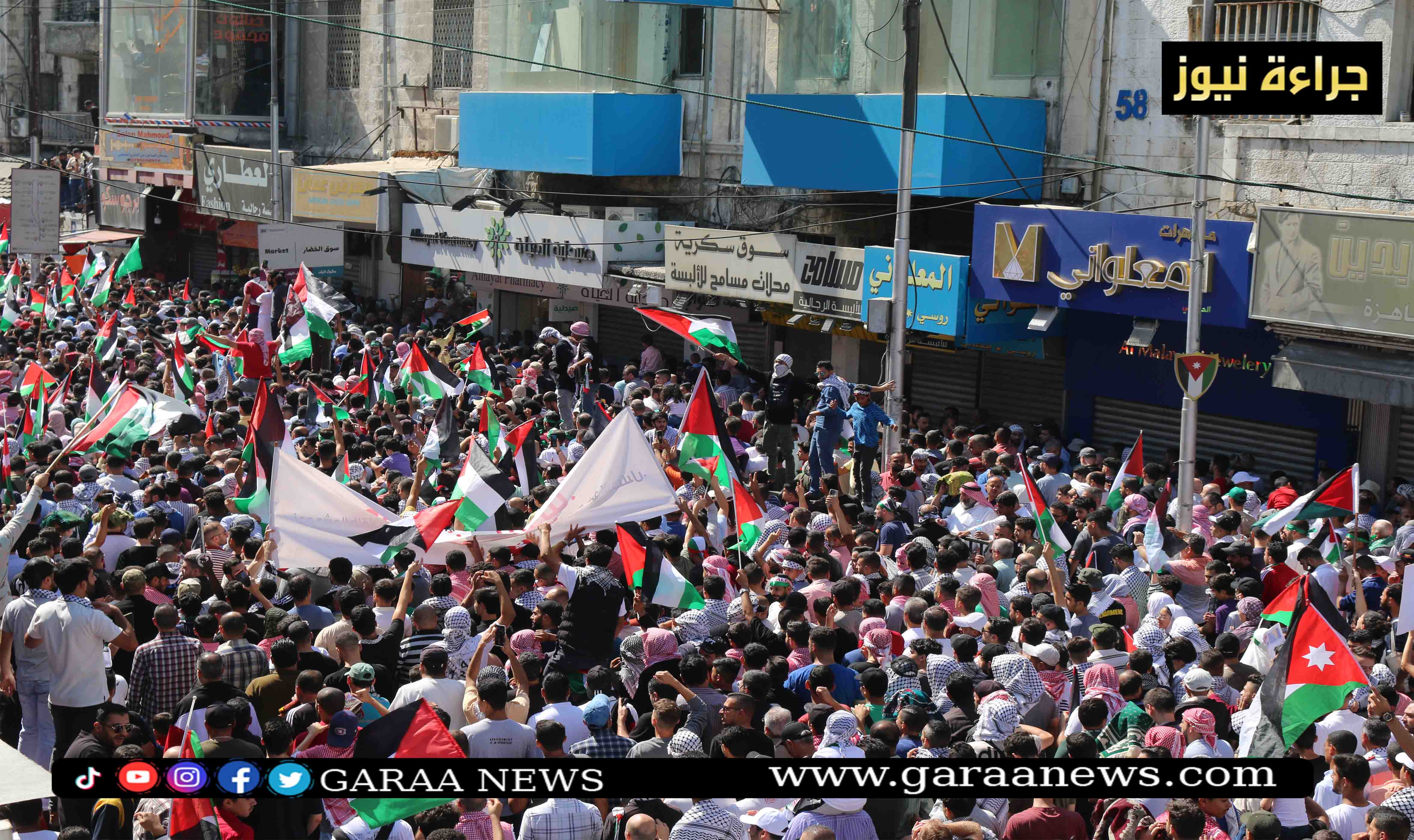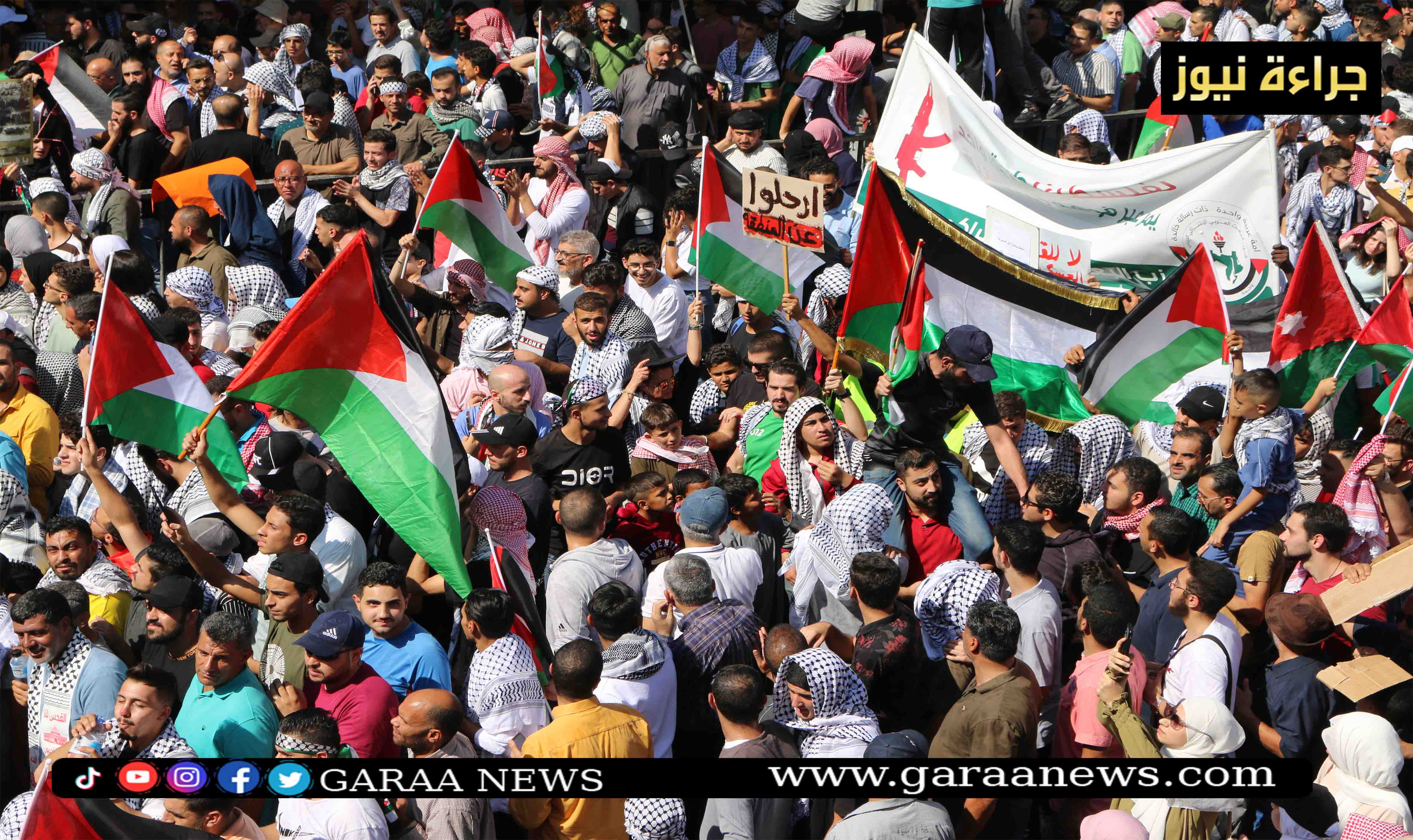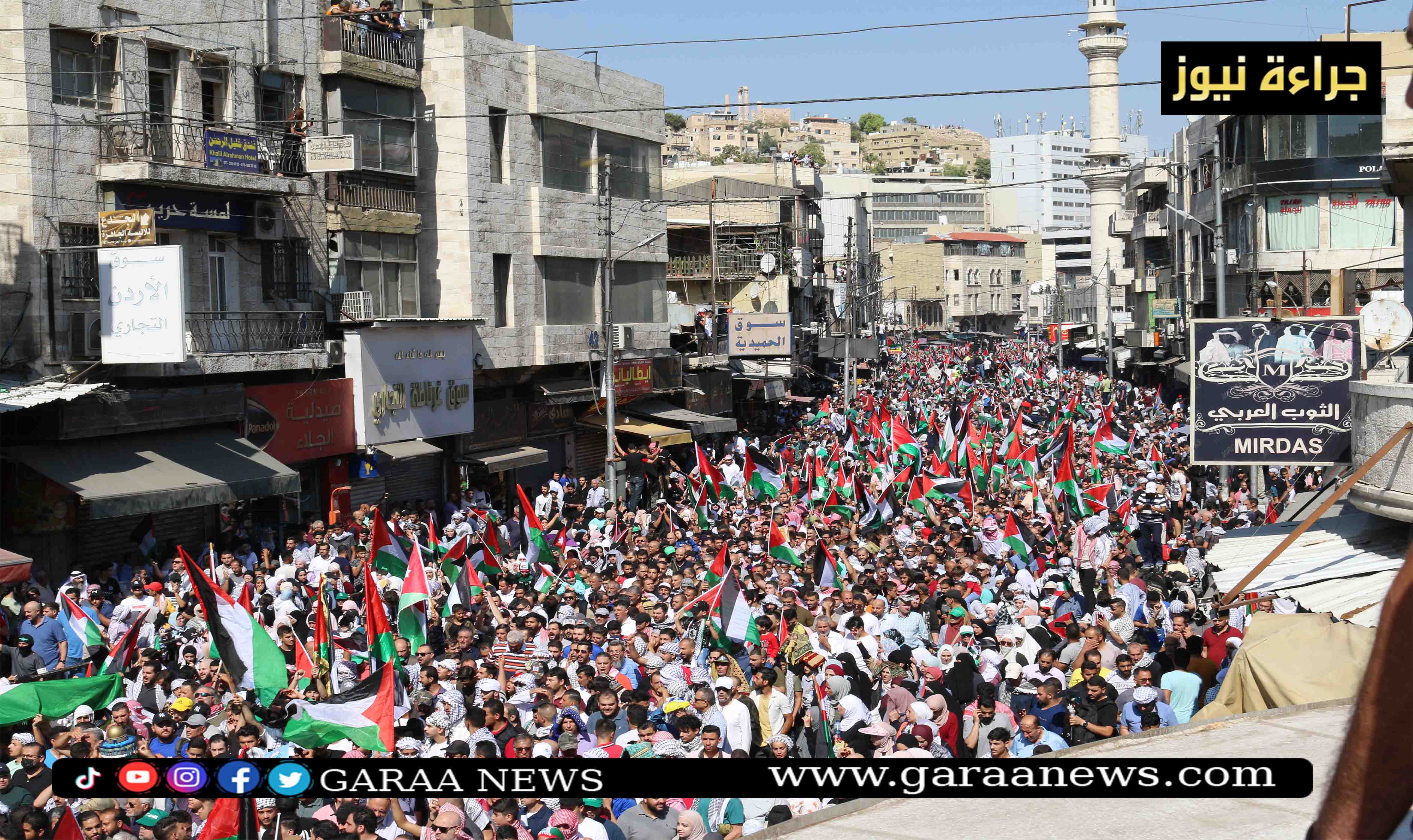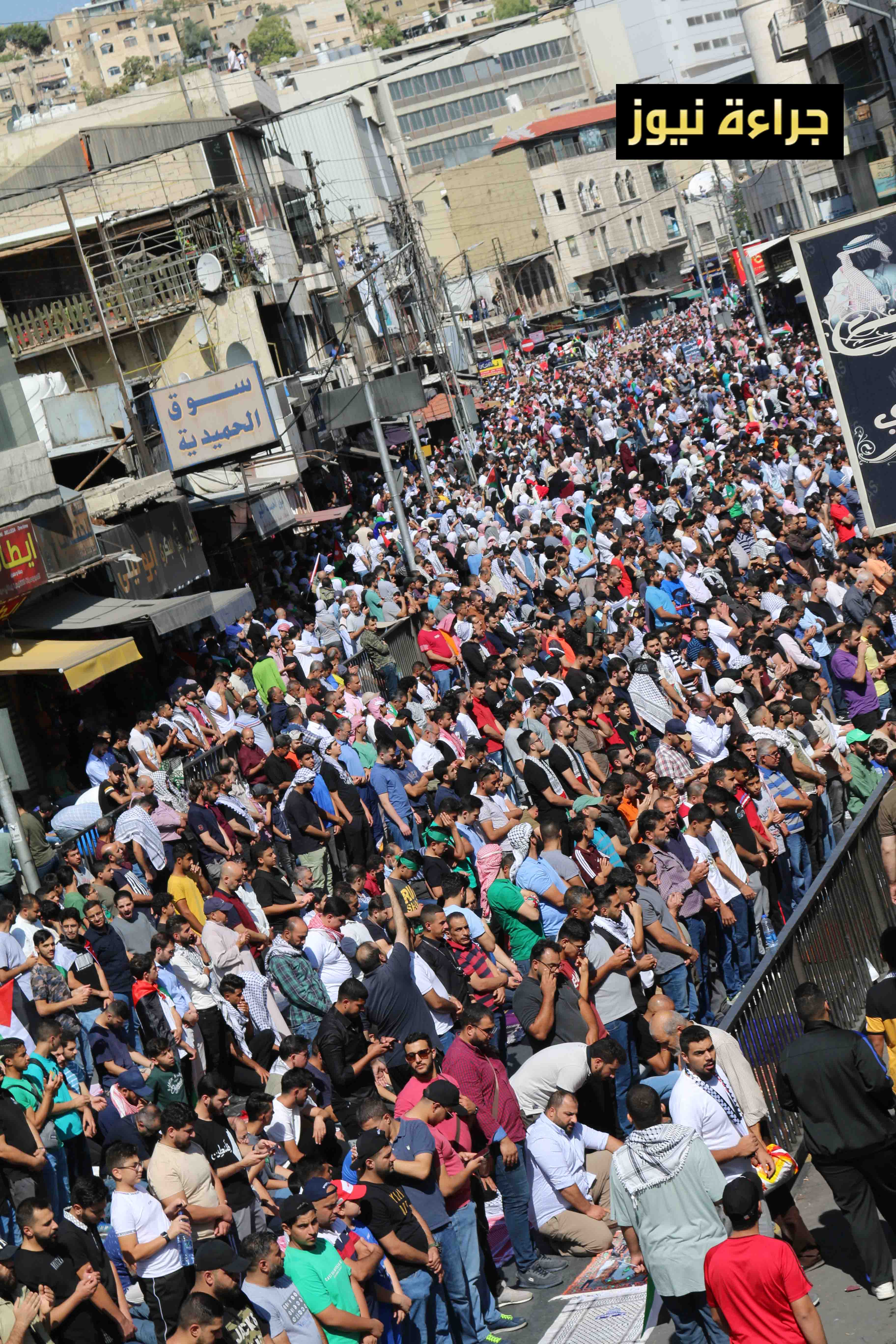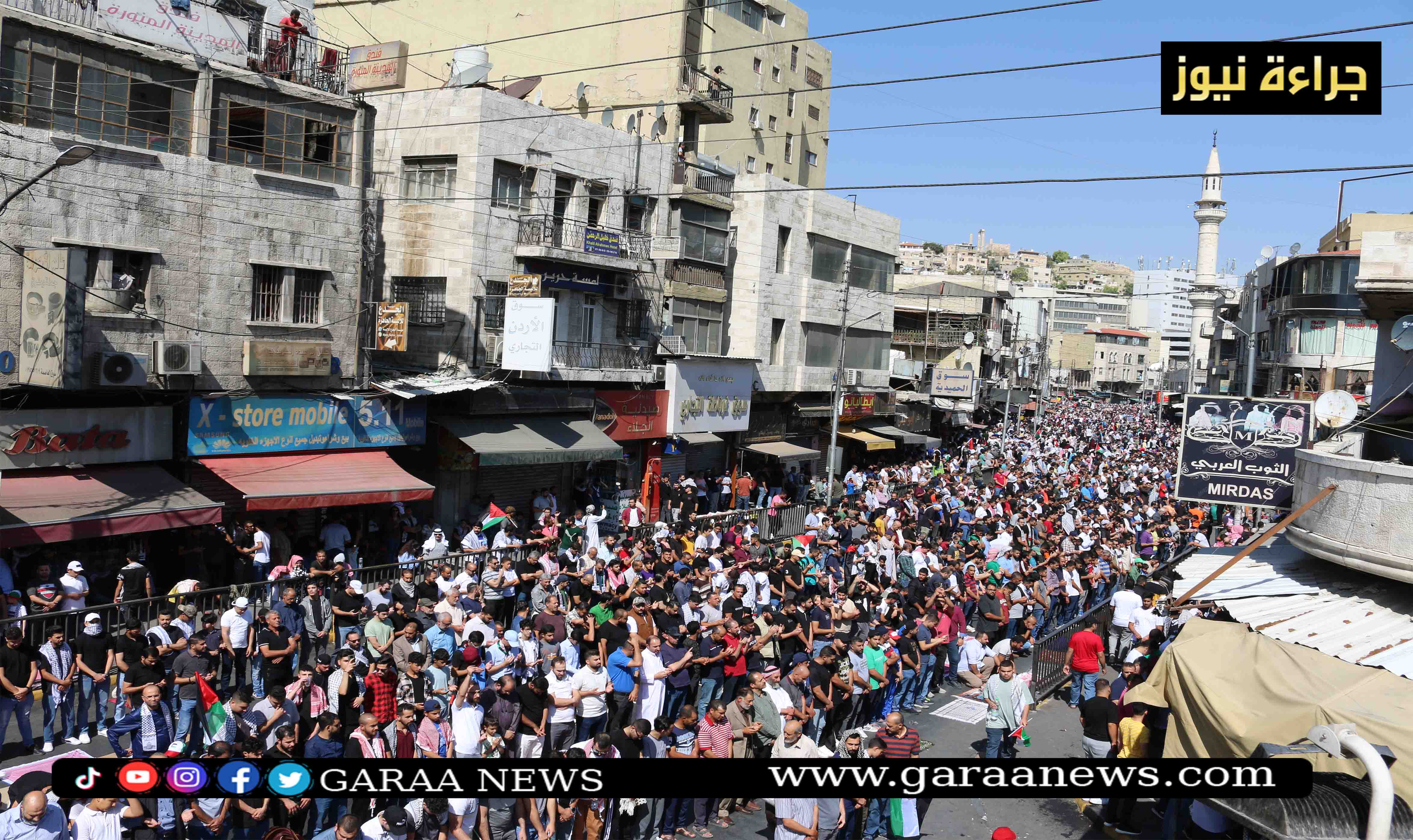 احتشد آلاف الأردنيين منذ ساعات الصباح الباكر من اليوم الجمعة؛ للمشاركة في مسيرات ضخمة في معظم محافظات المملكة دعما للمقاومة الفلسطينية.