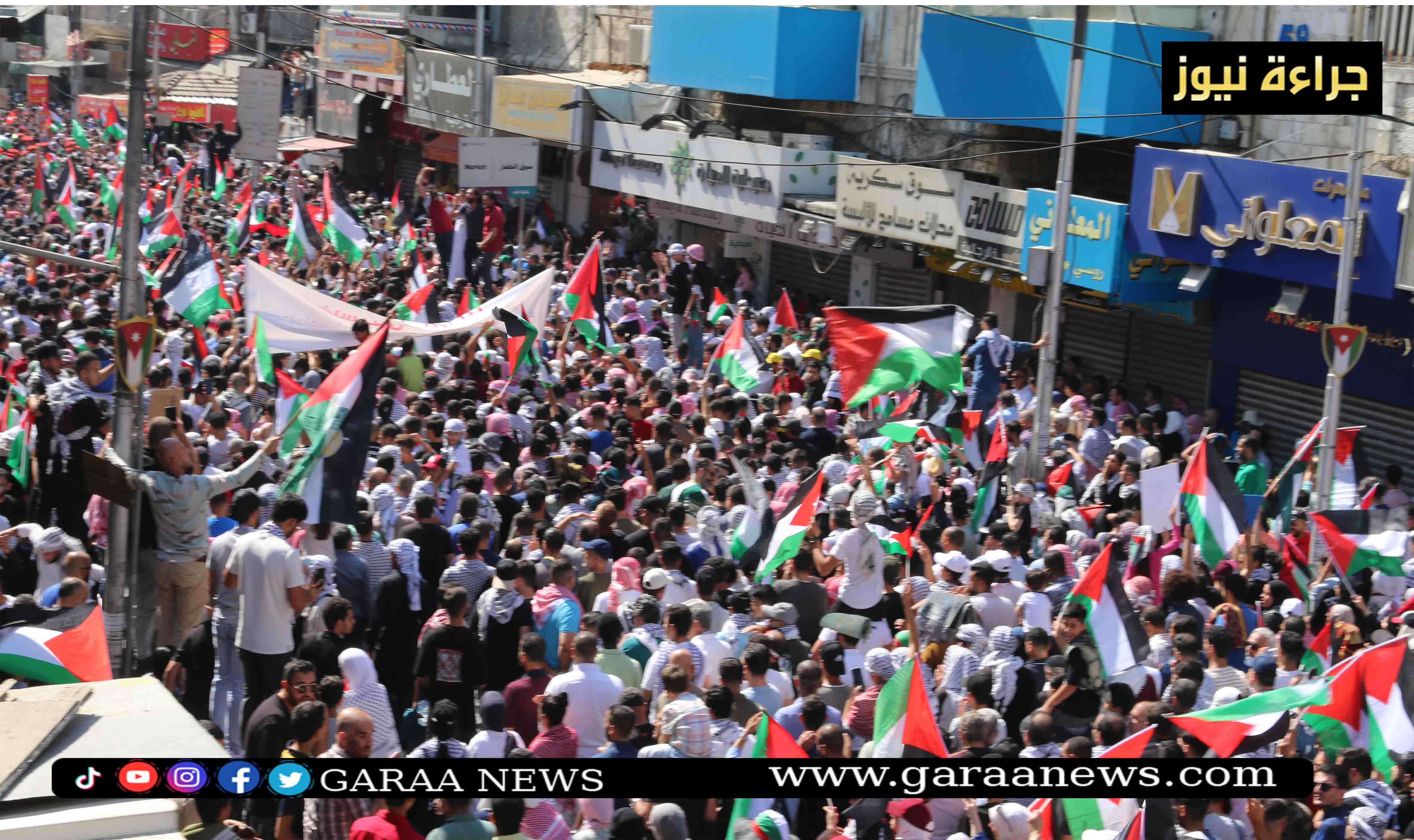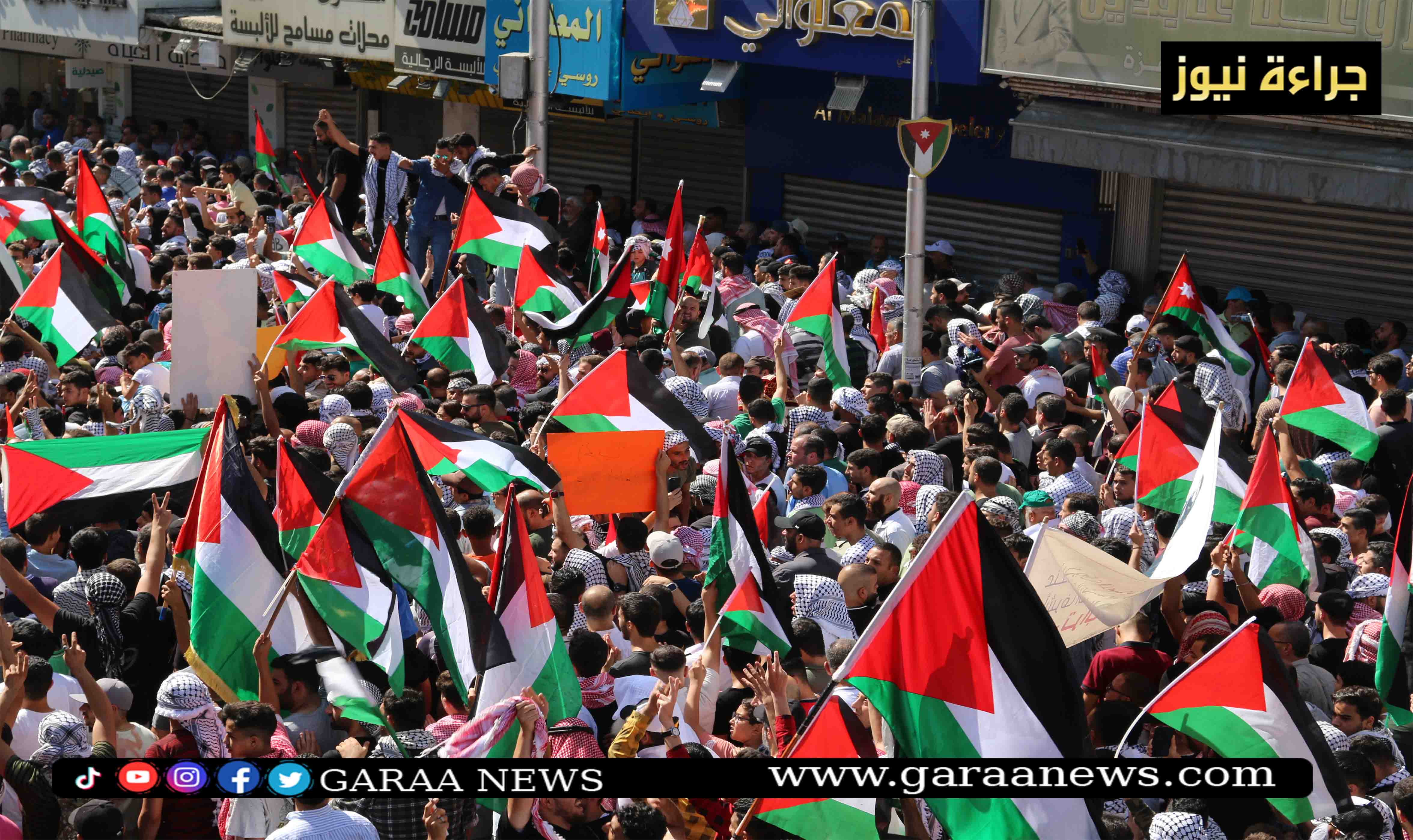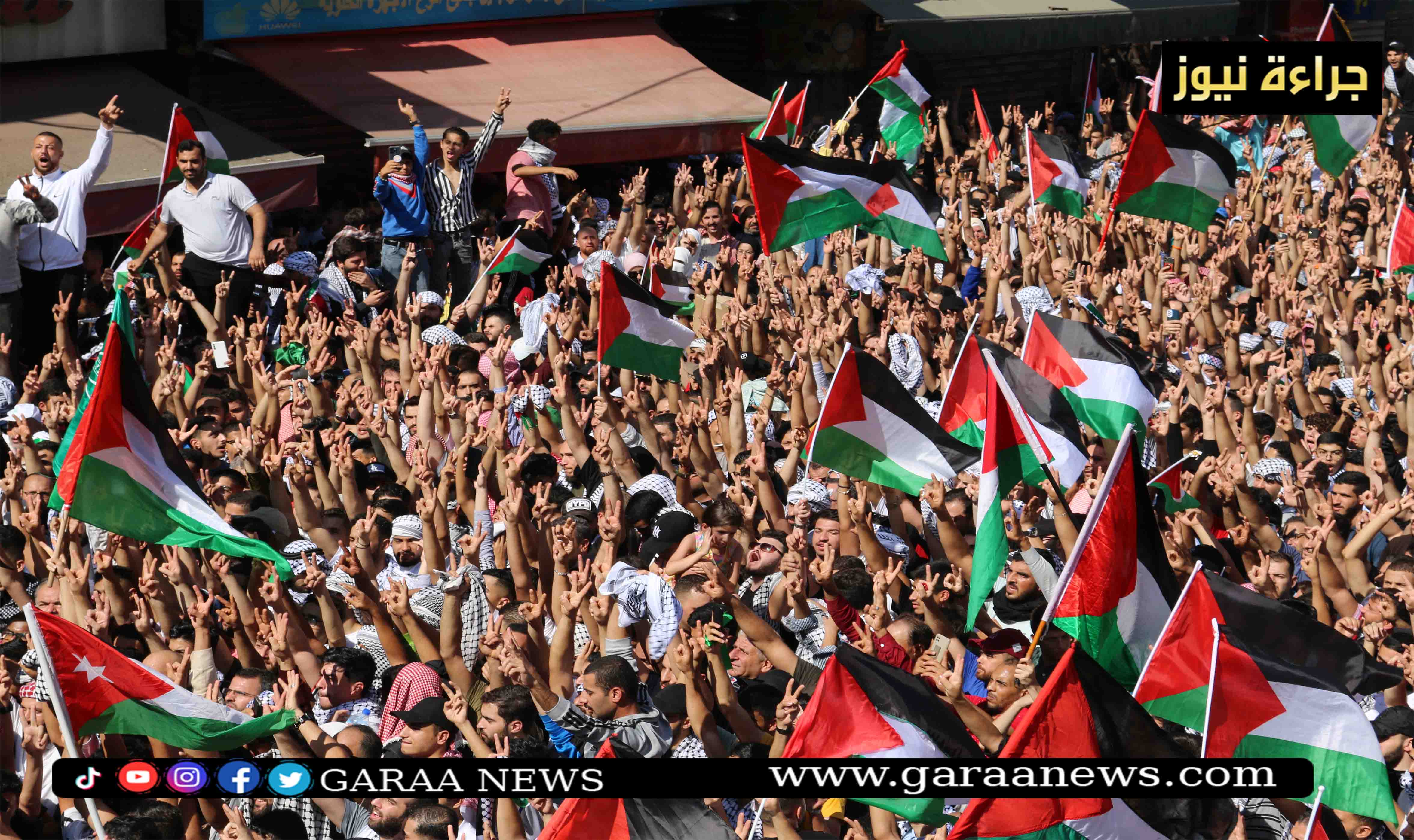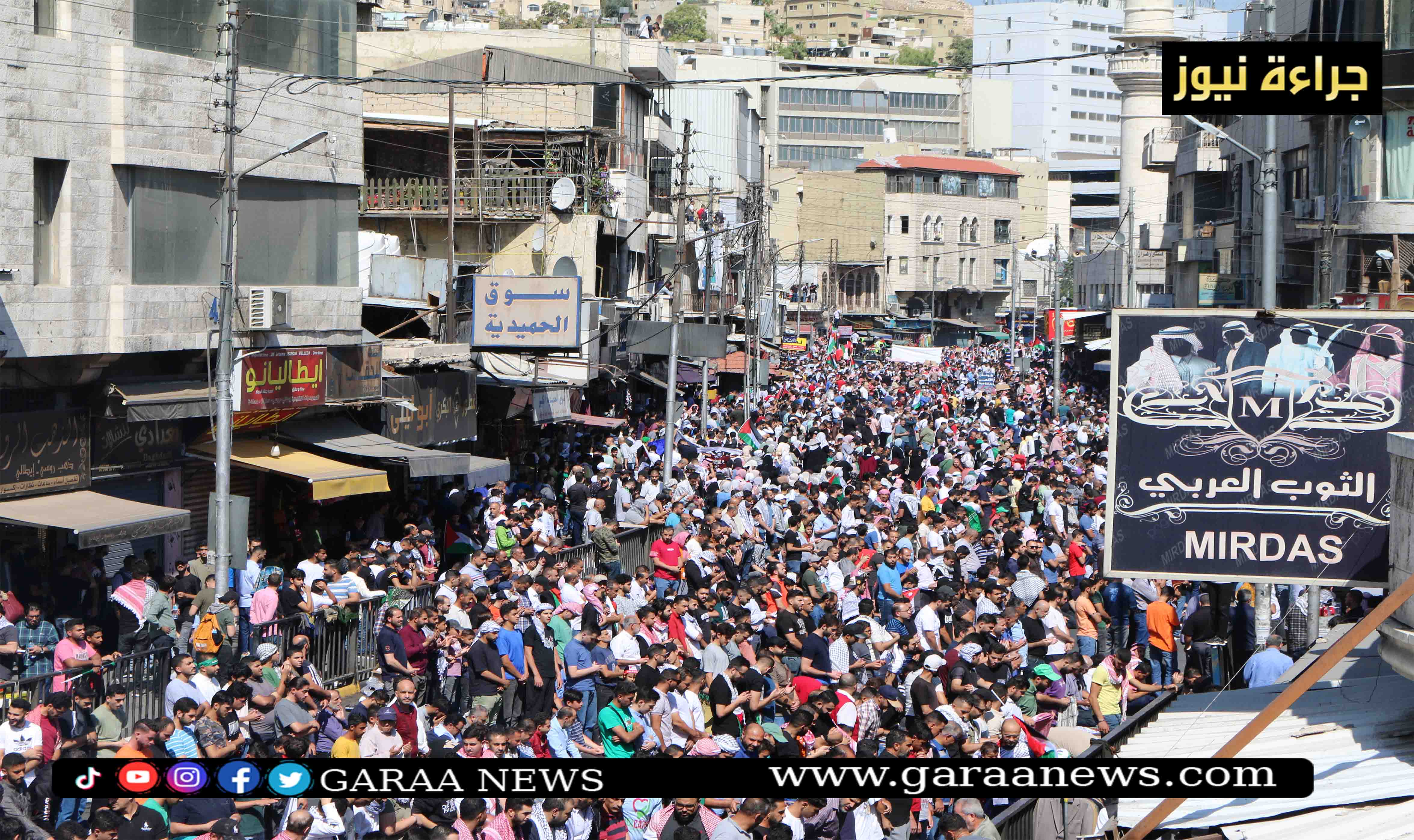 احتشد آلاف الأردنيين منذ ساعات الصباح الباكر من اليوم الجمعة؛ للمشاركة في مسيرات ضخمة في معظم محافظات المملكة دعما للمقاومة الفلسطينية.