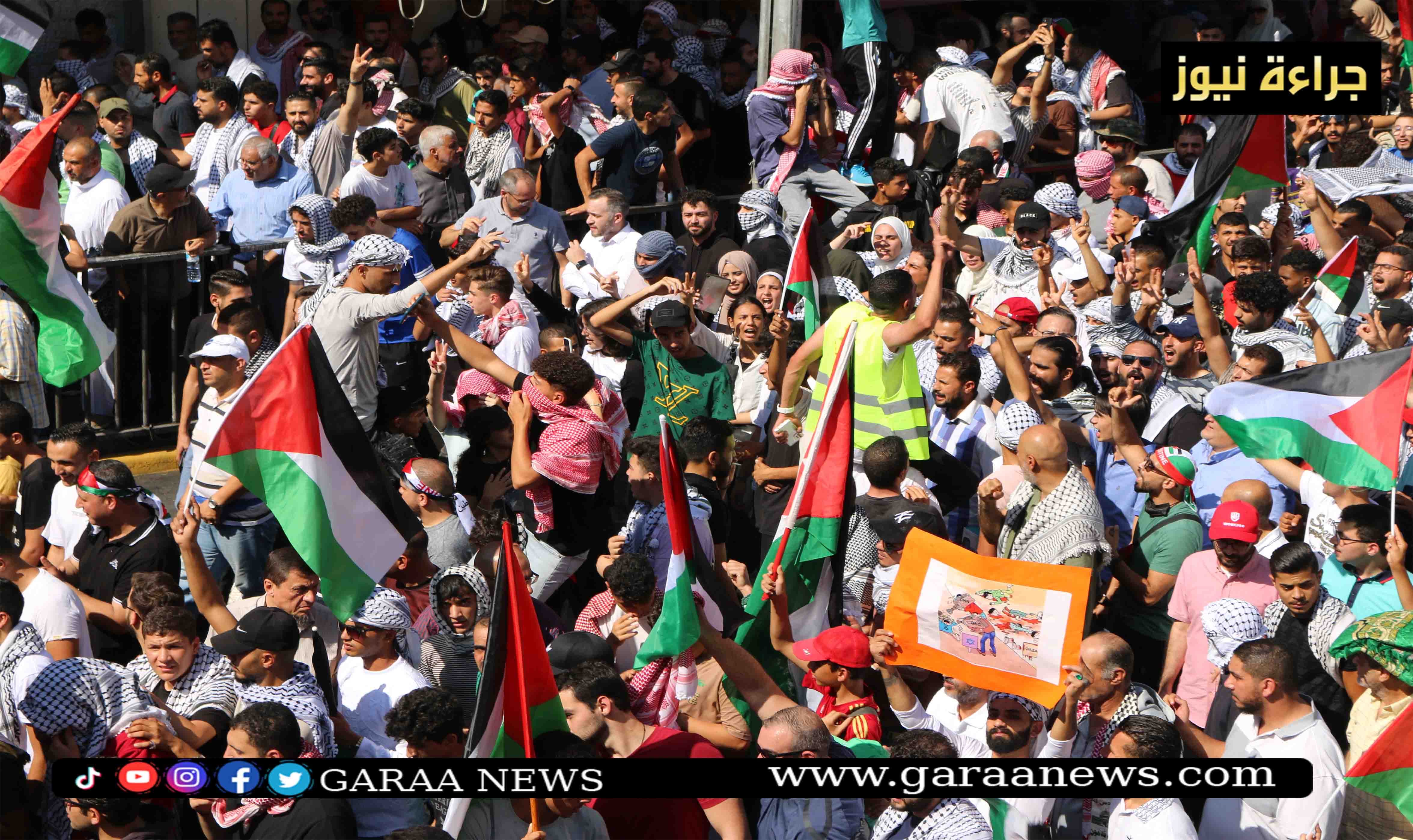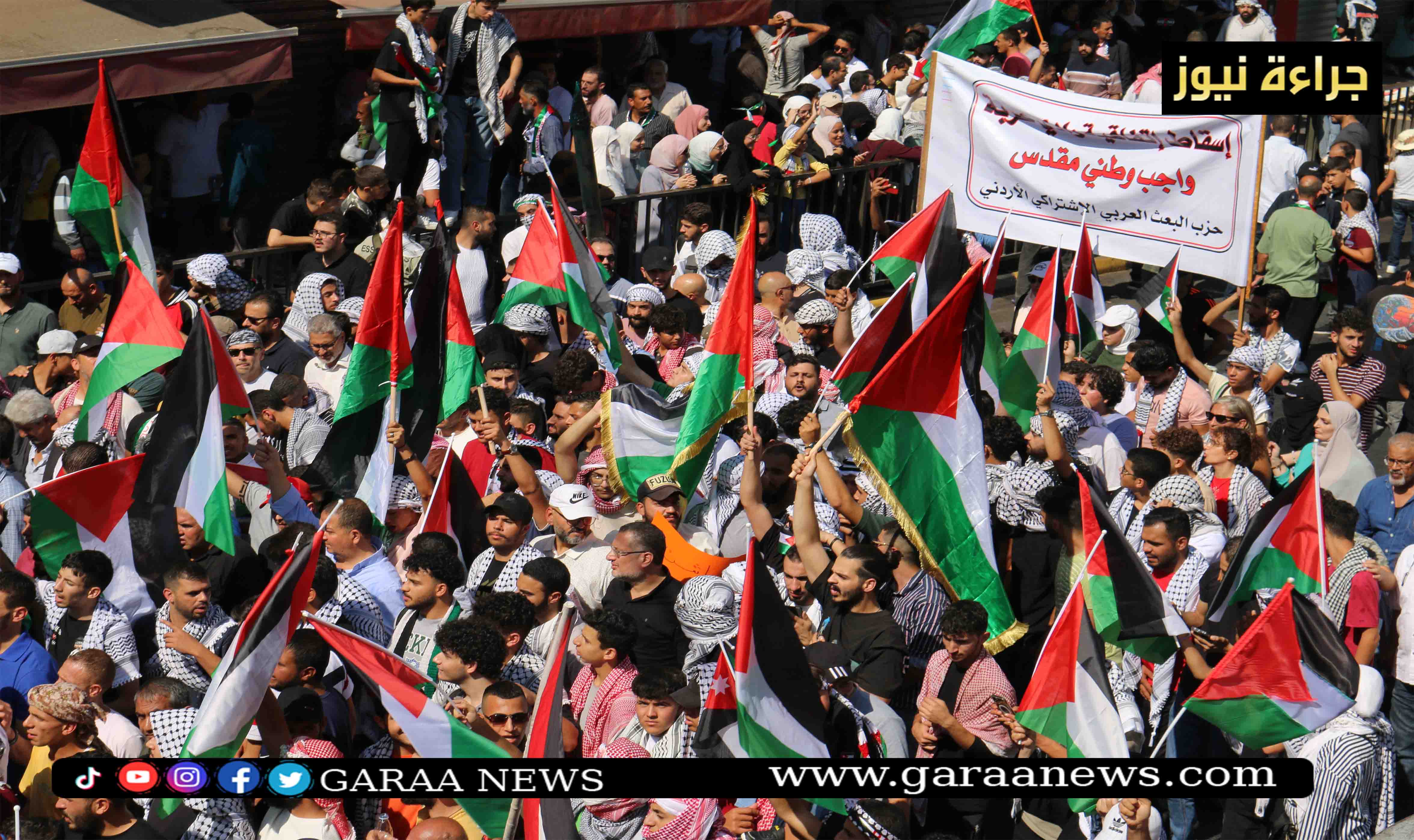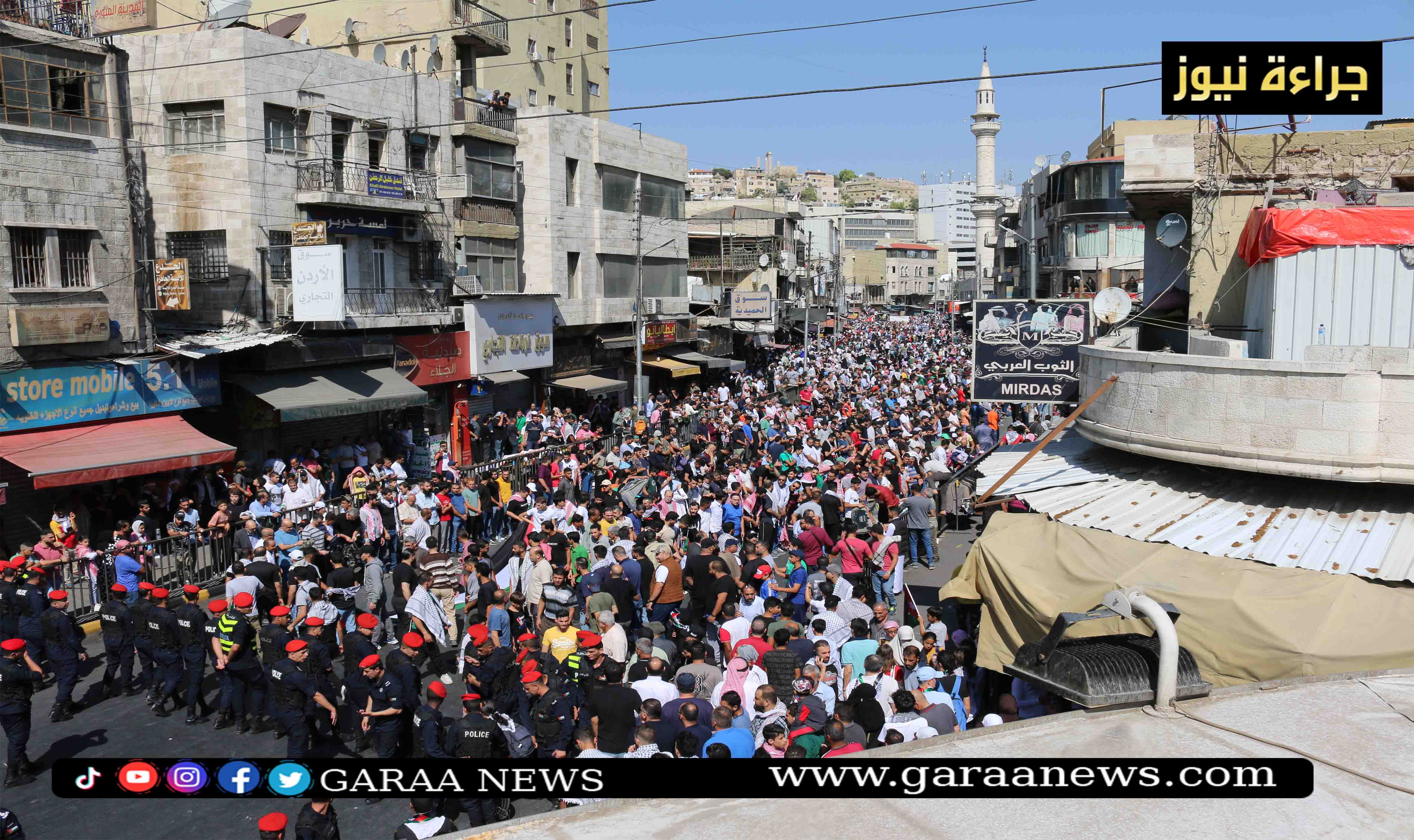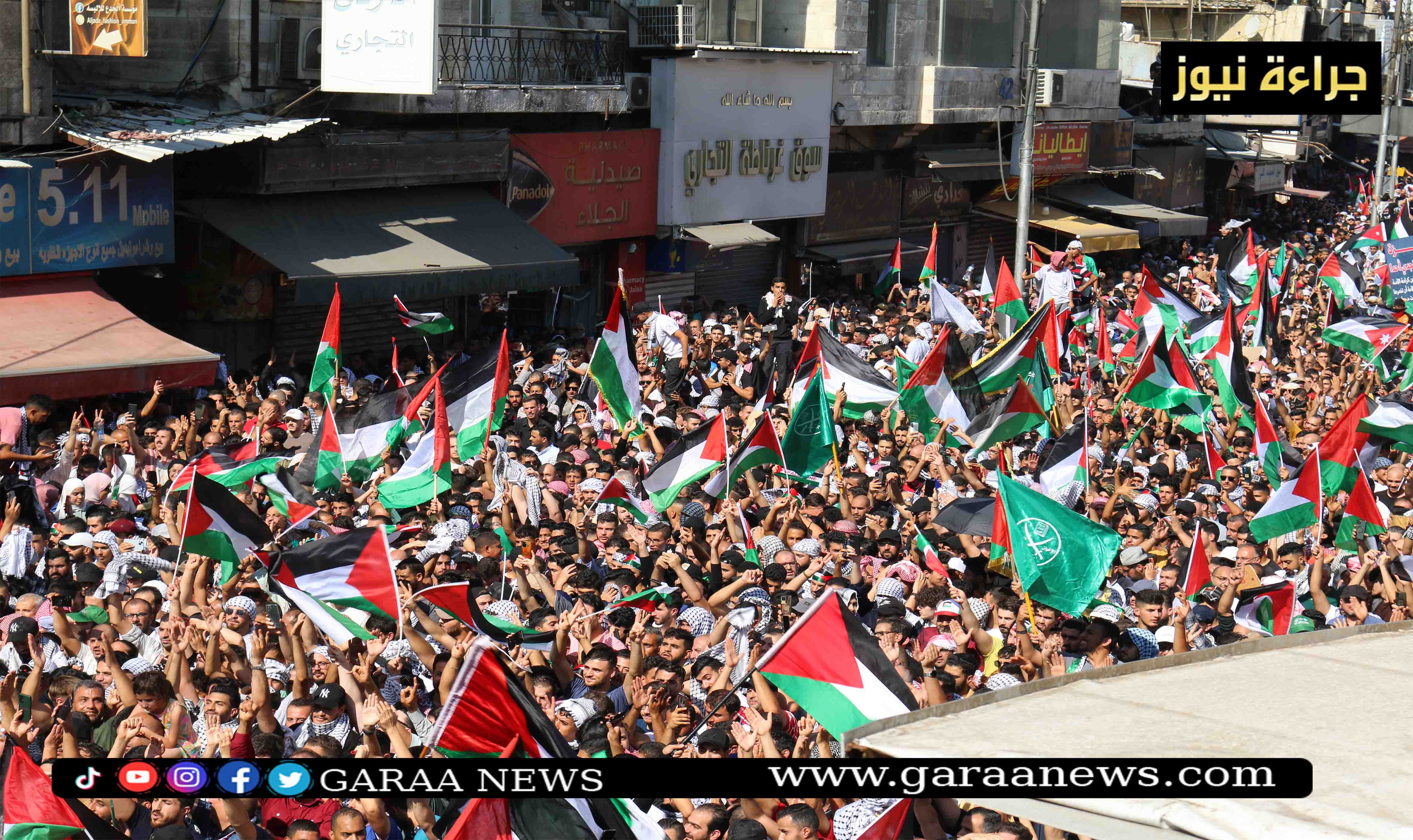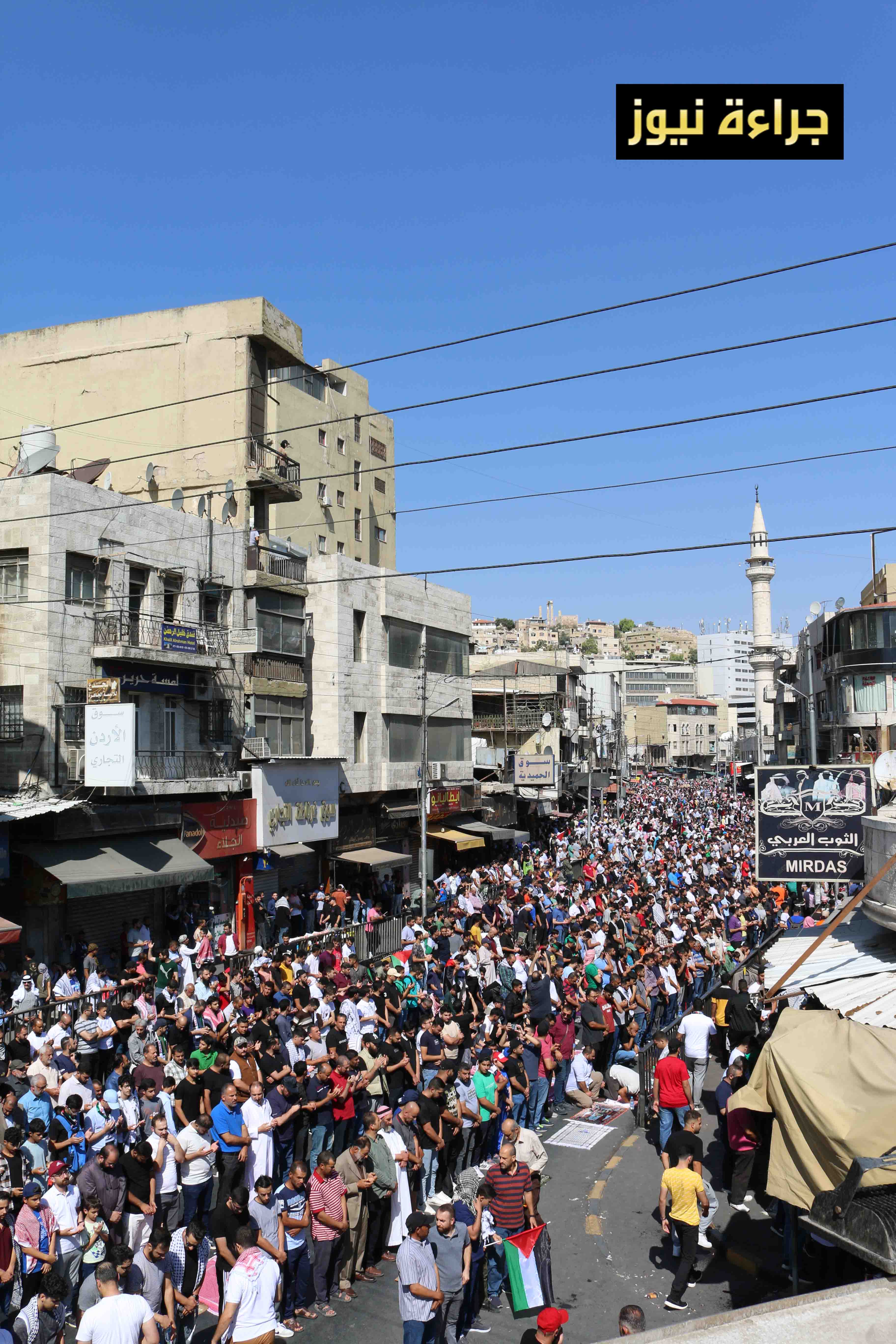 احتشد آلاف الأردنيين منذ ساعات الصباح الباكر من اليوم الجمعة؛ للمشاركة في مسيرات ضخمة في معظم محافظات المملكة دعما للمقاومة الفلسطينية.