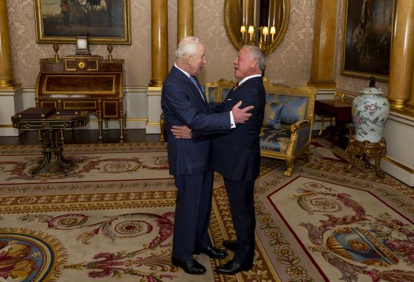 التقى جلالة الملك عبدالله الثاني في قصر باكنغهام بلندن، اليوم الخميس، جلالة الملك تشارلز الثالث، ملك بريطانيا.