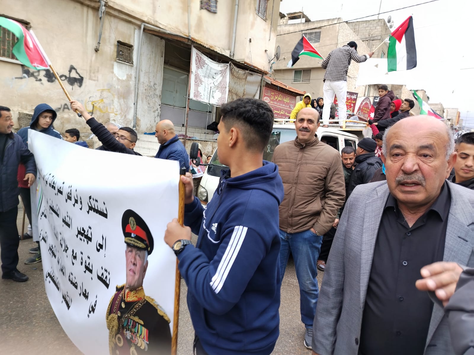 بعد صلاة ظهر يوم الجمعة ( ٧ / ٢ / ٢٠٢٥ ) وبدعوة من لجنة خدمات مخيم البقعة ونادي البقعة الرياضي والوجهاء والجمعيات الخيرية في مخيم البقعة ، انطلقت مسيرة من امام مسجد القدس،،بعدد حوالي 600 من كلا الجنسين رفضا لقرارات التهجير القسري والطوعي لابناء فلسطين وقطاع غزة ، وتاييدا لمواقف جلاله الملك في رفض التهجير