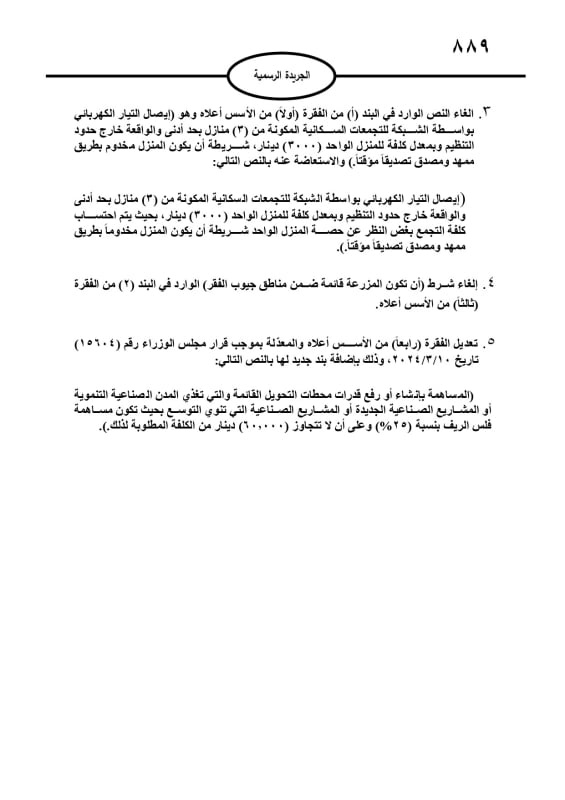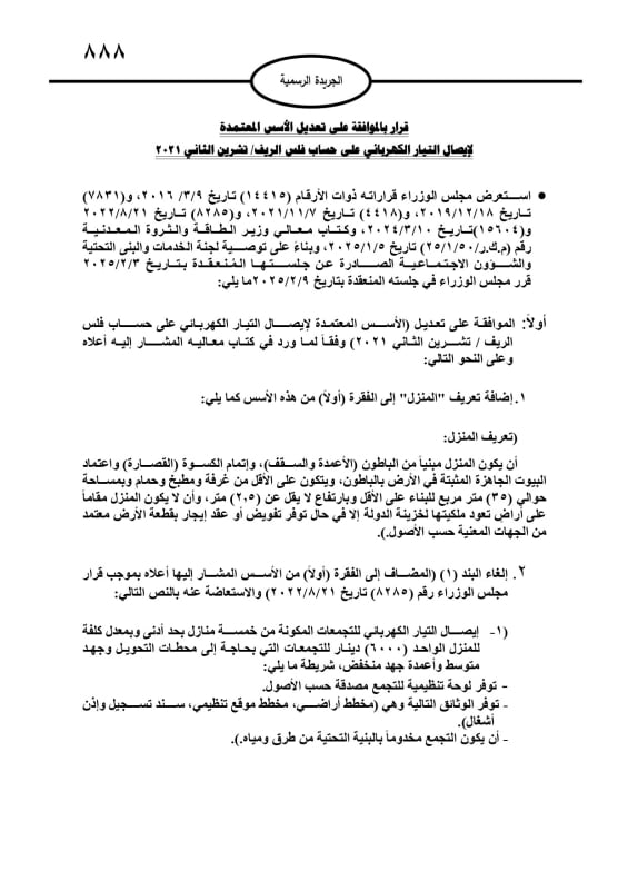 صدر قرار بالموافقة على تعديل الأسس المعتمدة لإيصال التيار الكهربائي على حساب فلس الريف.