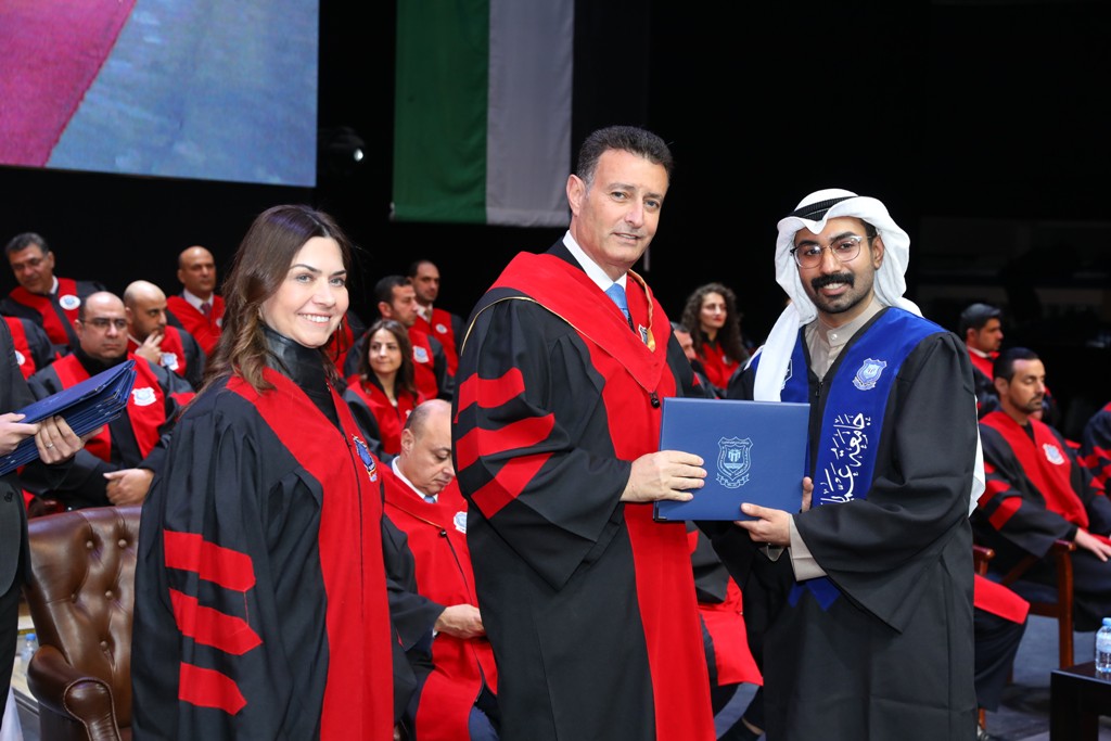 رعى سعادة السيد احمد الصفدي رئيس مجلس النواب مساء أمس 26-2-2025 على مسرح الأرينا احتفال اليوم الاول لجامعة عمان الاهلية بتخريج طلبتها للفصل الاول 2024- 2025 من الفوج (32) لكليات " الدراسات العليا ، الآداب والعلوم ، العلوم التربوية ، إدارة الضيافة والسياحة ، الحقوق ، الأعمال " بحضور الدكتور ماهر الحوراني نائب رئيس مجلس الأمناء ورئيس هيئة المديرين للجامعة والاستاذ الدكتور ساري حمدان رئيس الجامعة ونائبه الاستاذ الدكتور أحمد حمدان ومستشارة الرئيس الاستاذ الدكتورة هديل الياسين ومساعد الرئيس للشؤون الادارية والتطوير المؤسسي الدكتورإياد شعبان والسادة العمداء وأعضاء الهيئة التدريسية وعدد من أعضاء الهيئة الإدارية وحشد كبير من ذوي الطلبة الخريجين والمدعوين .
