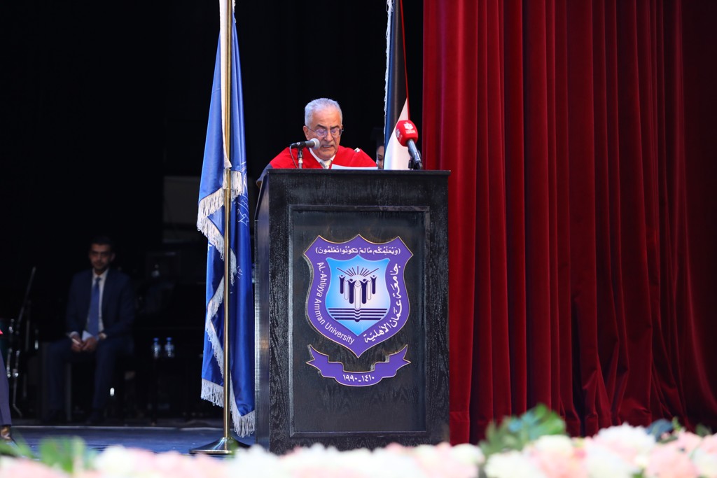 يسعدني أن أرحب بكم أجمل ترحيب في هذا اليوم المميز الذي نحتفل فيه بتخريج طلبة كلية الدراسات العليا وكلية الآداب والعلوم وكلية الحقوق و كلية الأعمال و كلية العلوم التربوية وكلية إدارة الضيافة والسياحة في جامعة عمان الأهلية. إن هذا اليوم هو ثمرة جهود متواصلة من العمل والجد والمثابرة، وهي لحظة فخر لنا جميعًا.