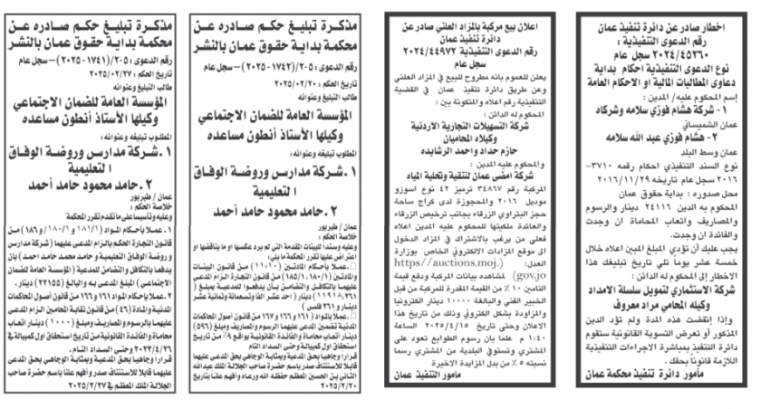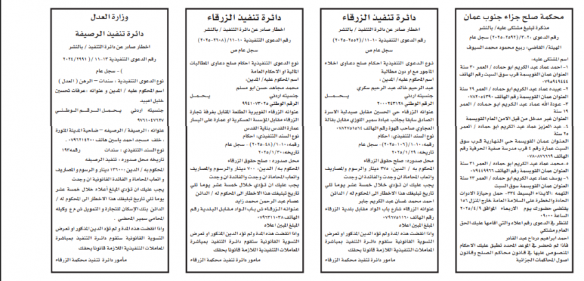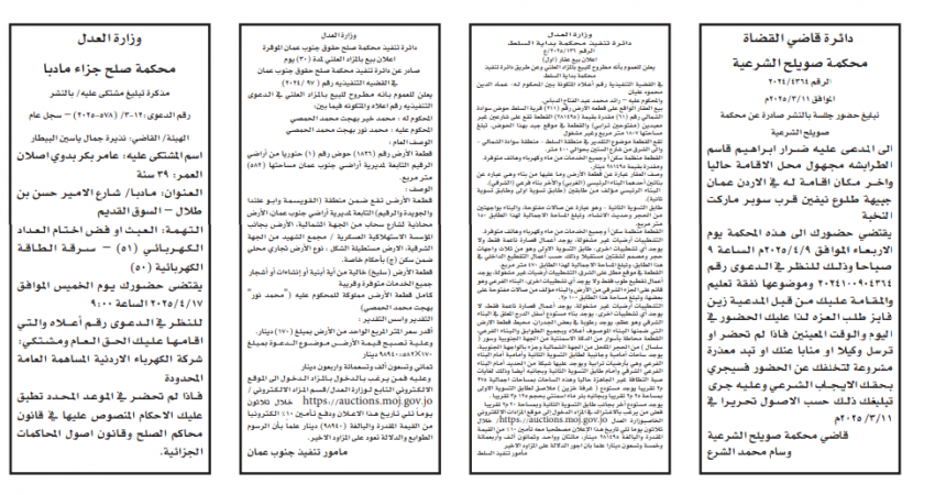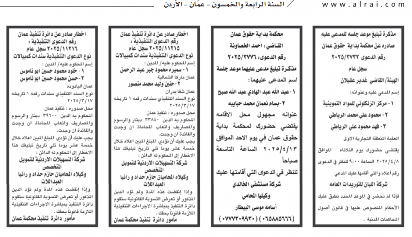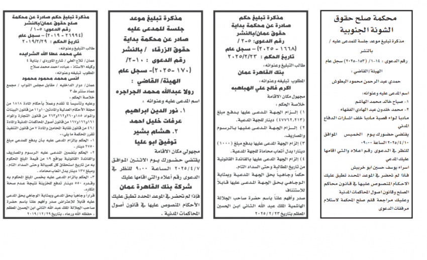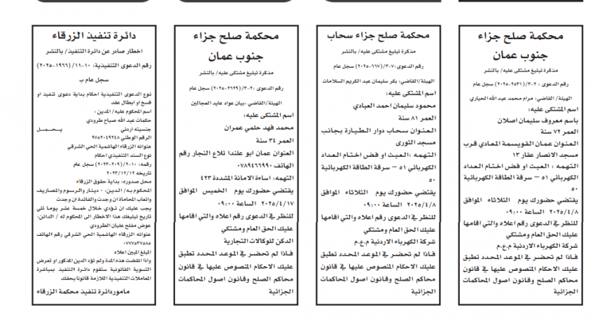 وطلبت المذكرات من المذكورين في الجداول أدناه مراجعة المحاكم المبينة ازاء اسم كل منهم في المواعيد المبينة أدناه.
