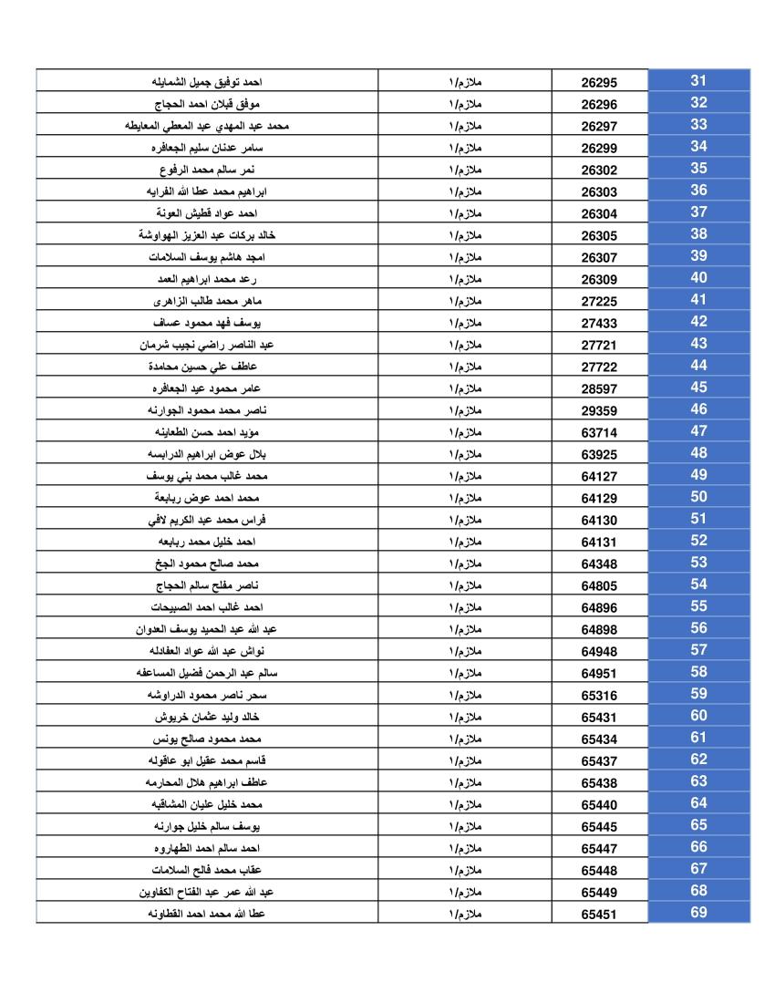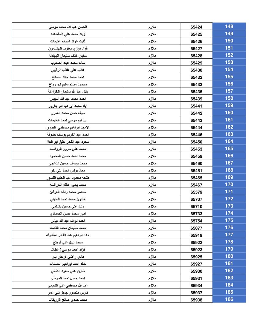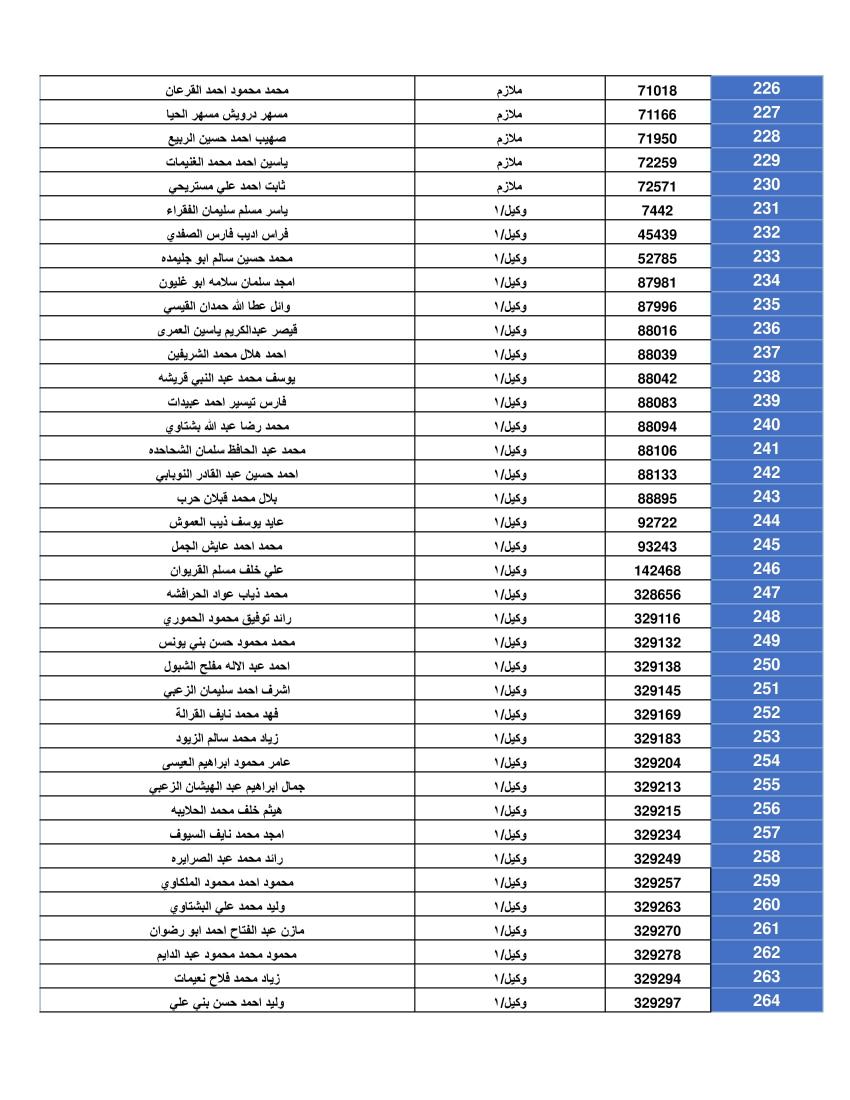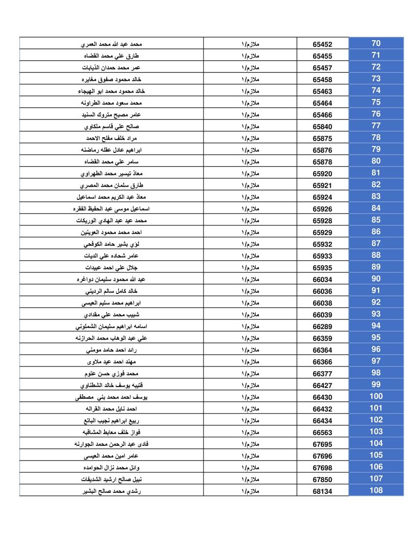 ودعت الضباط وضباط الصف والأفراد المبينة أسماءهم أدناه المستحقين لقرض الإسكان العسكري (الخاص بالافراد) والضباط المستفيدين من صندوق إسكان الضباط مراجعة بنك القاهرة عمان بكافة فروعه خلال ساعات الدوام الرسمي اعتباراً من يوم الخميس الموافق 8/05/2025 للحصول على القرض.