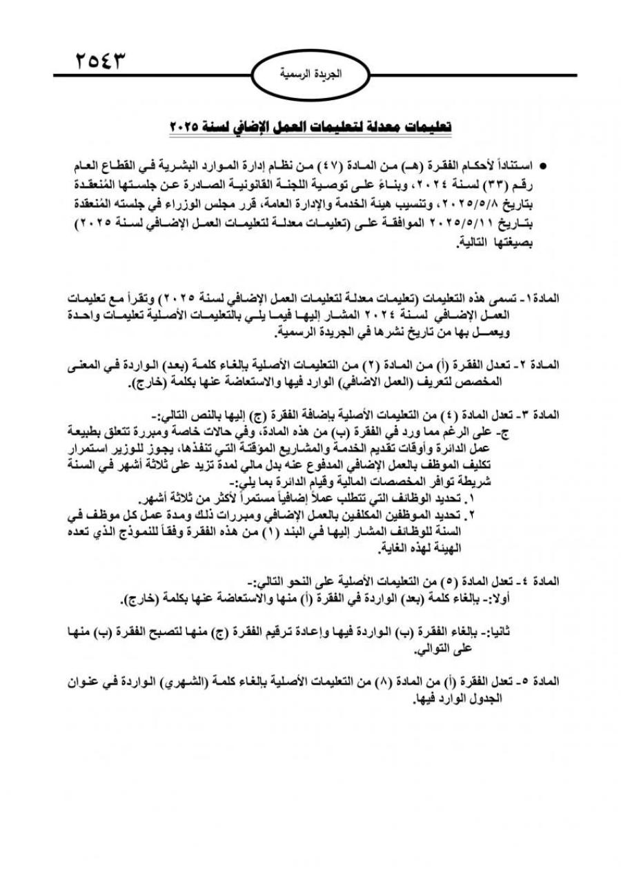 صدرت في عدد الجريدة الرسمية الخميس، التعليمات المعدلة لتعليمات العمل الاضافي لسنة 2025.
