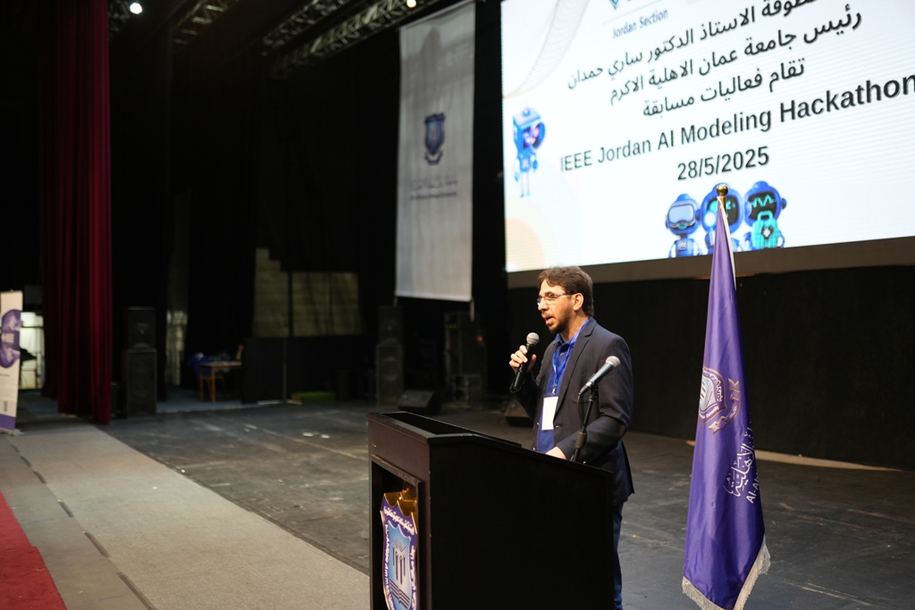 كما ألقى الأستاذ الدكتور ساري حمدان كلمة عبّر فيها عن فخره باستضافة جامعة عمان الأهلية لهذا الحدث العلمي المميز، مؤكدًا التزام الجامعة بدعم المبادرات التي تعزز من قدرات الطلبة في مجالات التكنولوجيا الحديثة.