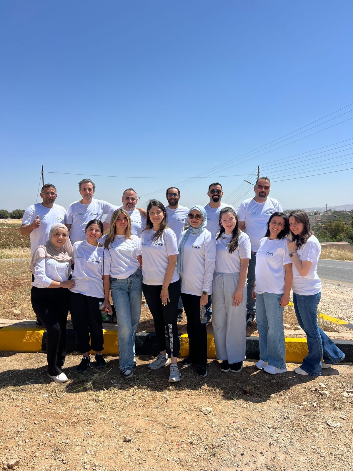 البنك الاردني الكويتي ينفذ حملة لموظفيه لطلاء أرصفة مساره المتبنى على طريق السلط-ارميمين