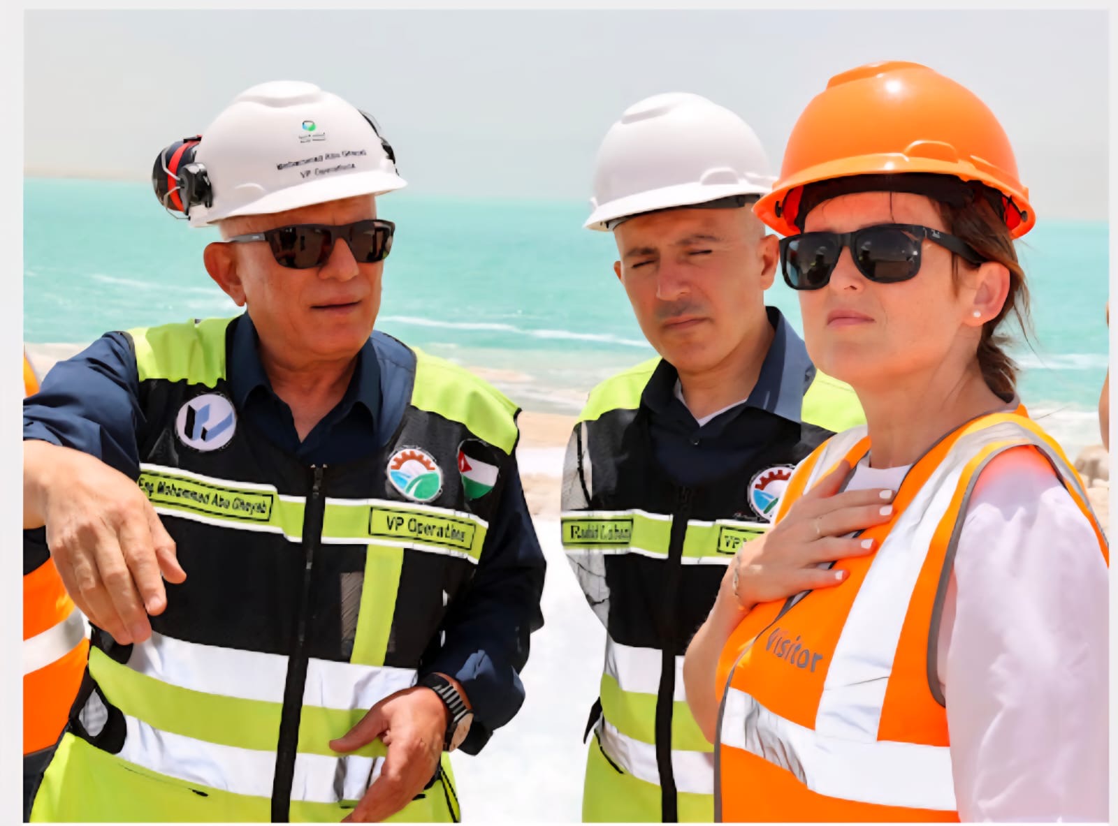 وشهدت الزيارة، جولة ميدانية شاملة لكلاين على مواقع الشركة التشغيلية في غور الصافي والعقبة، ومحطاتها اللوجستية والصناعية، بما في ذلك محطة الضخ والملاحات الشمسية، ومركز البحث والتطوير والابتكار، ومستودعات التخزين، والميناء الصناعي، إضافة إلى شركة صناعات الأسمدة والكيماويات العربية "كيمابكو" -إحدى الشركات التابعة لشركة البوتاس العربية-.