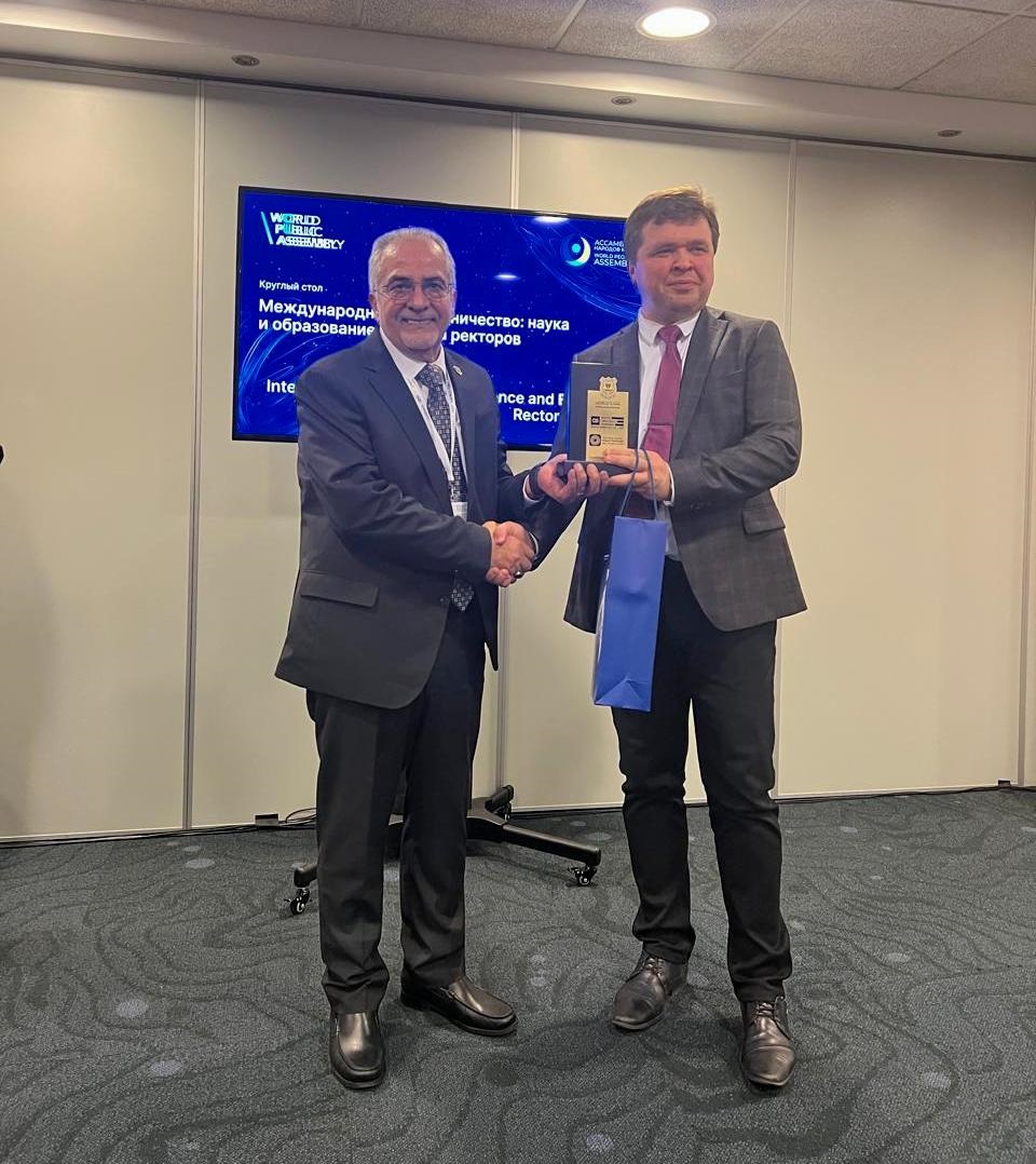 وفي جلسة العلم والتعليم واجتماع رؤساء الجامعات، ألقى رئيس جامعة عمان الأهلية الأستاذ الدكتور ساري حمدان كلمة استعرض فيها أبرز التحديات التي تواجه الجامعات والبحث العلمي، مؤكداً ضرورة ترجمة توصيات المؤتمر إلى خطوات عملية. كما قدّم درع الجامعة التذكاري إلى رئيس مجلس رؤساء الجامعات الروسية.