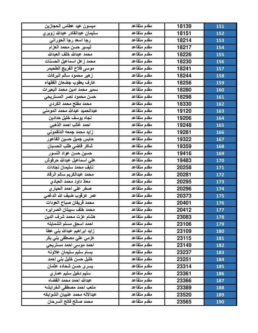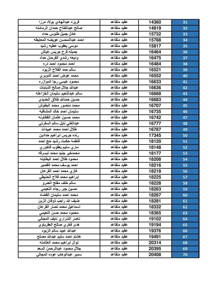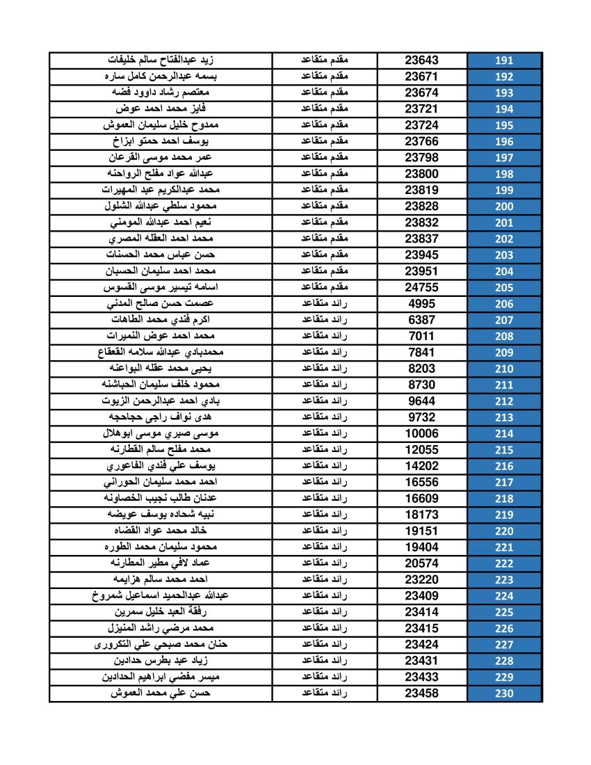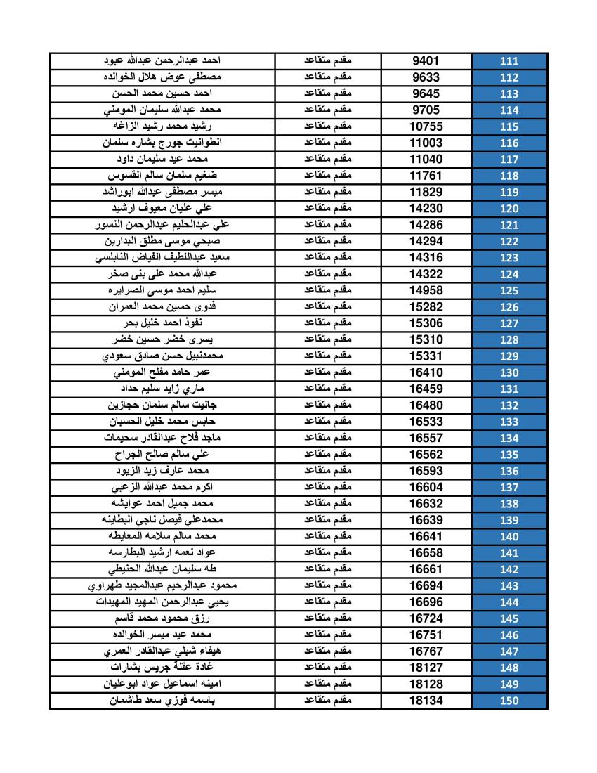 أعلنت القيادة العامة للقوات المسلحة الأردنية – الجيش العربي/ مديرية مؤسسة الإسكان والأشغال العسكرية بضرورة مراجعة الضباط المستفيدين من صندوق إسكان ضباط القوات المسلحة الأردنية المبينة أسماءهم أدناه بنك القاهرة عمان بكافة فروعه خلال ساعات الدوام الرسمي اعتباراً من يوم الأحــد الموافق 28/09/2025 لاستلام مبالغ الرديات المستحقة لهم بعد أن انهوا سداد القروض الممنوحة لهم.