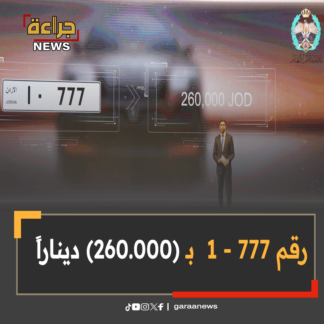 كشفت مديرية الأمن العام عن تفاصيل المزاد العلني الذي عُقد على الأرقام المميزة للوحات المركبات، والذي سيتم تحويل ريعه إلى صندوق دعم الطالب.