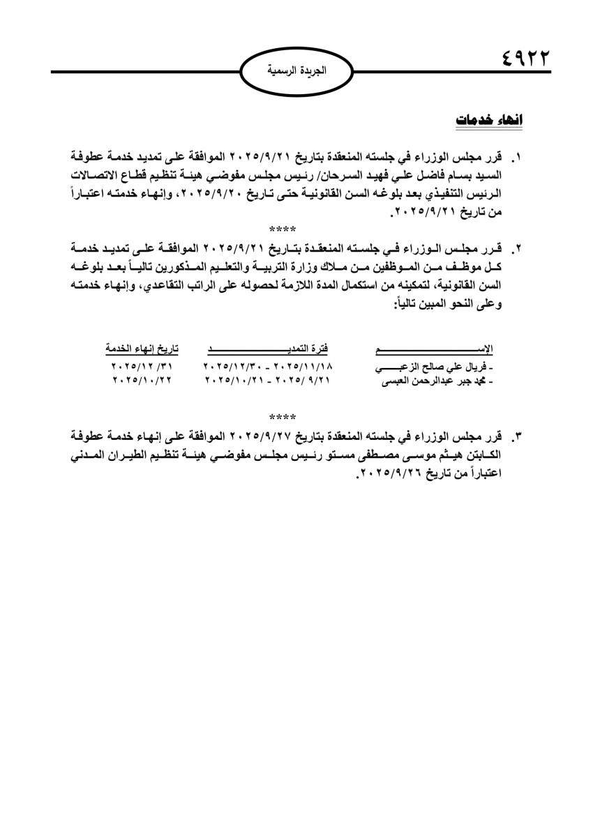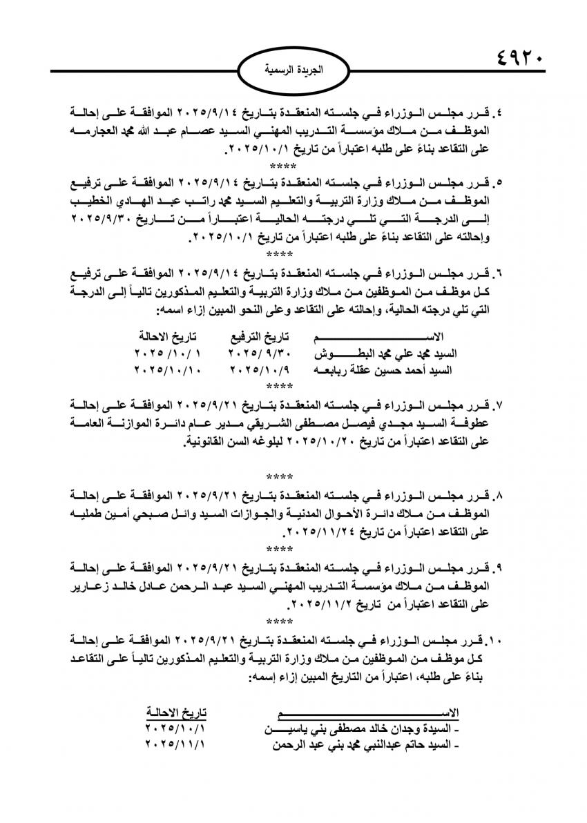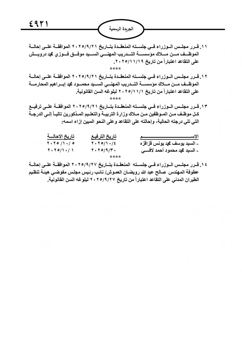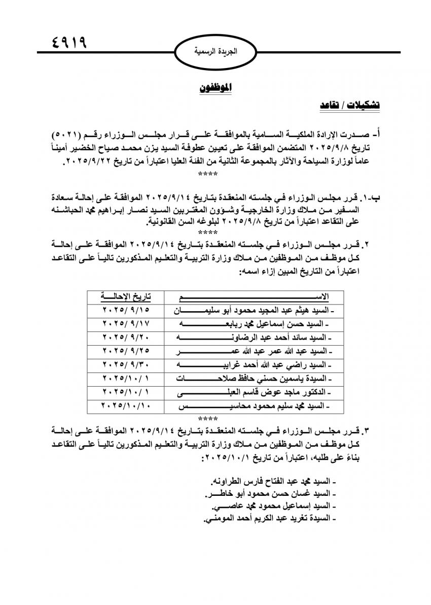 صدر في عدد الجريدة الرسمية اليوم الاربعاء، قرارات مجلس الوزراء بإحالة موظفين حكوميين إلى التقاعد، وانهاء خدمات آخرين.