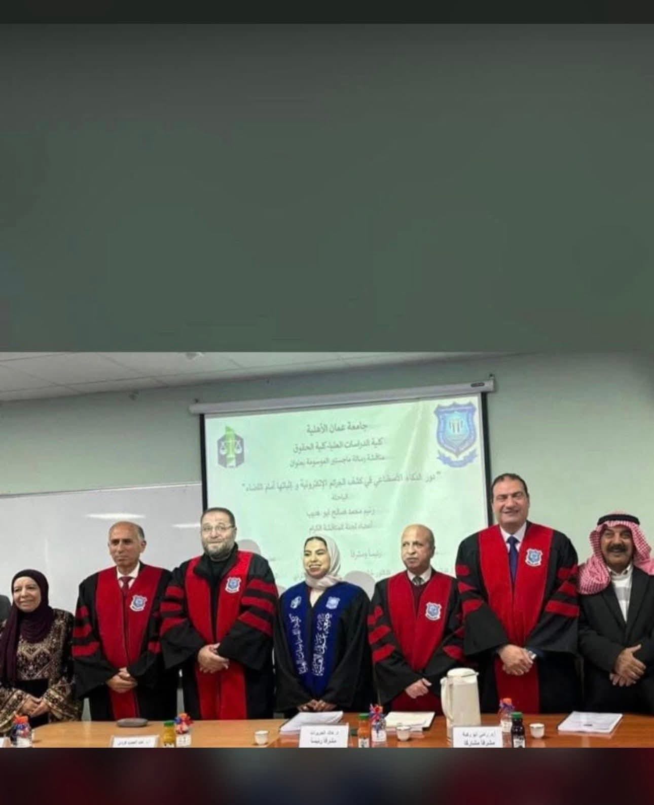 تم في جامعة عمان الأهلية مناقشة رسالة الماجستير المقدمة من المحامية رنيم ابو هديب ، للحصول على درجة الماجستير في القانون العام .