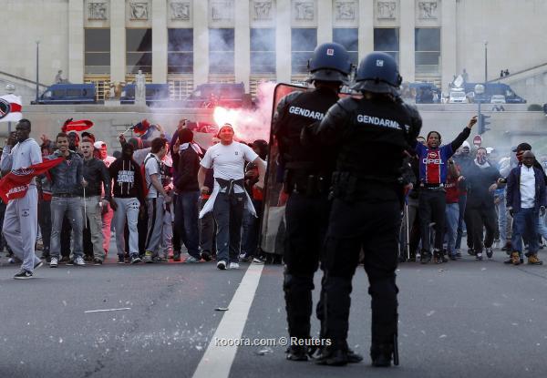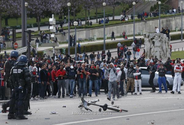 لم تستمر احتفالات باريس سان جيرمان بتتويجه بلقب دوري الدرجة الأولى الفرنسي لكرة القدم طويلا اليوم الاثنين بعد أن وقعت اشتباكات بين مشجعيه وقوات الشرطة في غرب العاصمة الفرنسية.