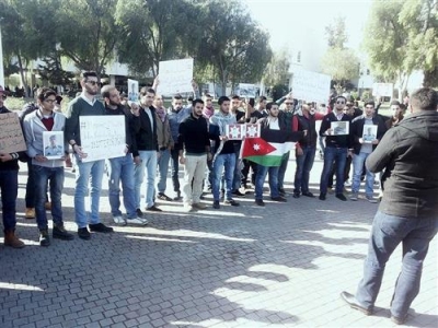 الطلبة الاردنيون المفصولون من مدرسة ليبية يعتصمون امام السفارة الليبية