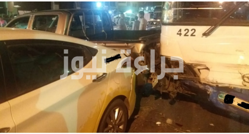شاهد بالصور ...في حادثه وصفت بالمأساه باص المتكامله بتدهور على خمس مركبات ليحطمها
