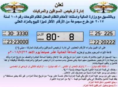 الترخيص والمركبات نعلن عن بيع الارقام الاكثر تميزا